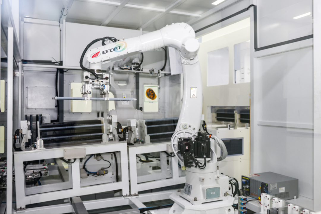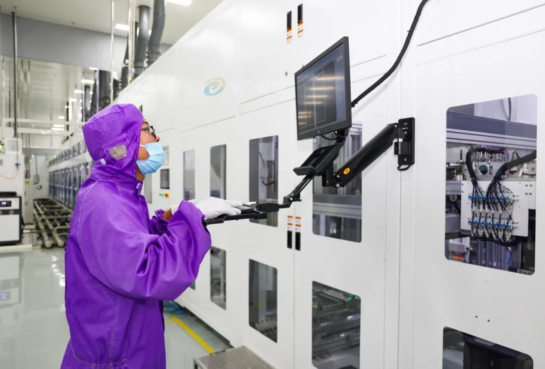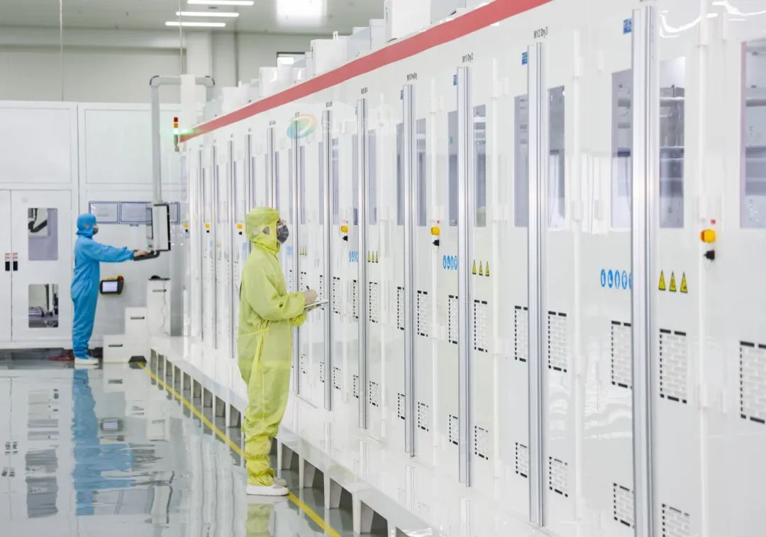 鸿钧高效异质结太阳能电池及组件生产基地(以下简称“鸿钧异质结项目”)内,崭新的智能化装配线上,机器人作业精准、高效、有序,高度自动化的流水线设备协调配合,生产过程行云流水。