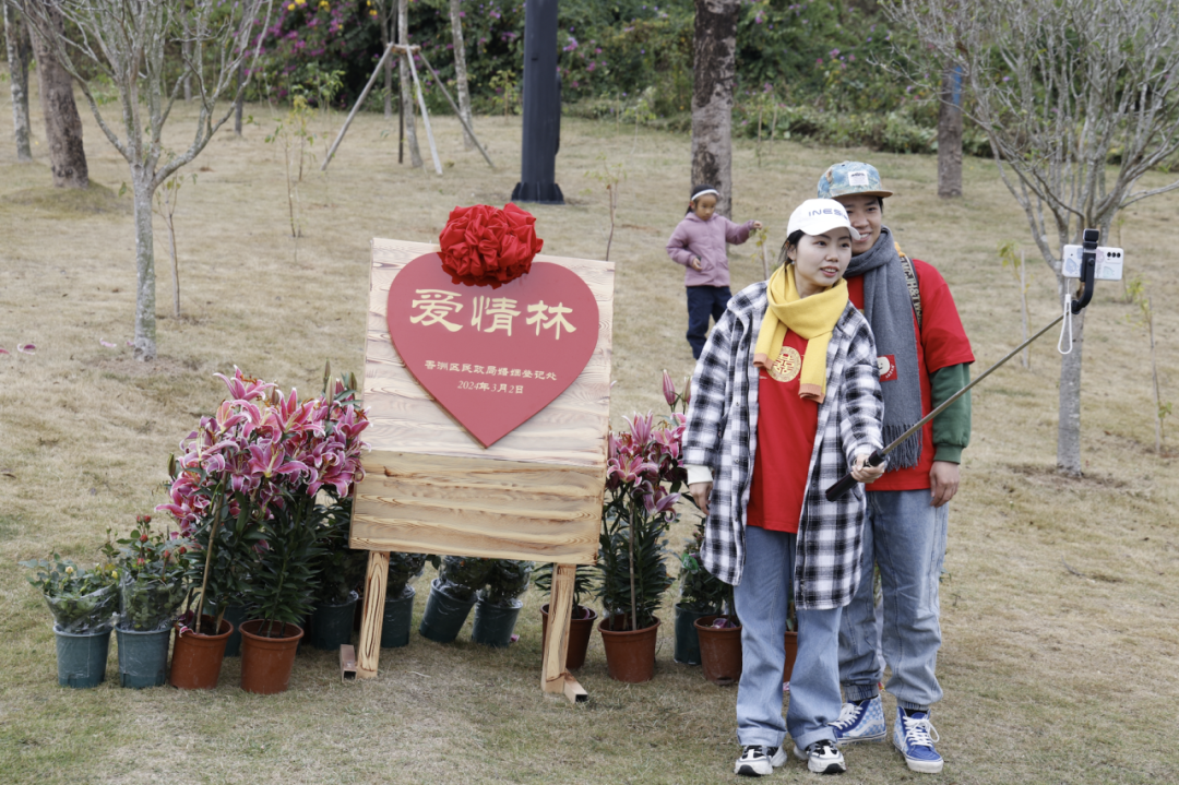 据了解,为助力绿美广东建设,深化全省婚俗改革实验区创建,结合婚姻登记处位于香山湖公园的天然条件,香洲区民政局会同市自然资源局香洲分局、香山湖公园管理方珠海正方公共资源运营有限公司在香山湖公园开辟了三个区域的“爱情林”。