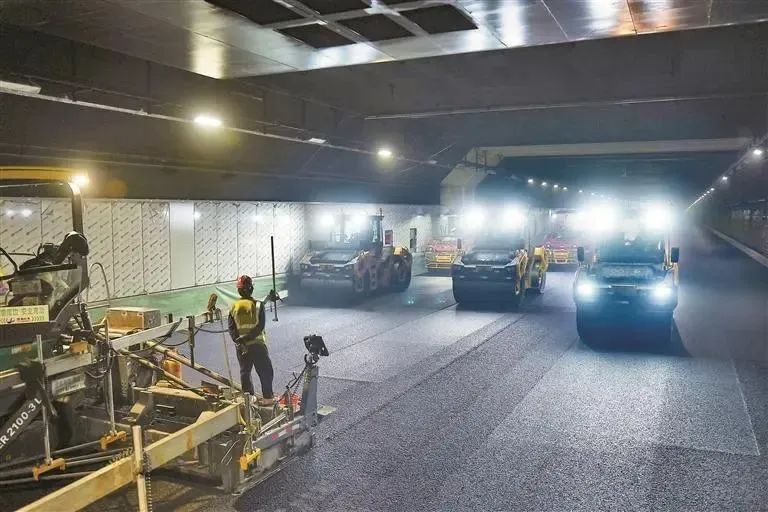 按照施工计划,本次隧道沥青路面下面层首件段起于北侧行车道E21管节,项目路面工程总体计划于2024年4月完成。