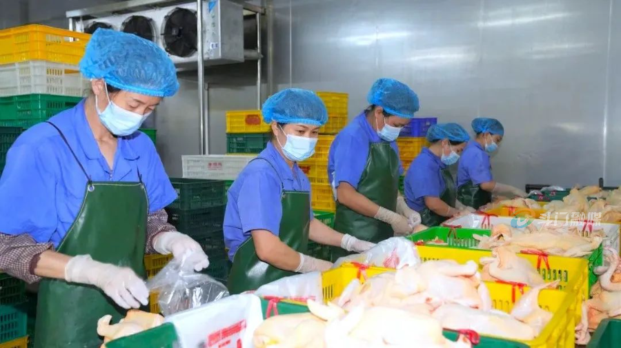 自2017年以来,公司产品率先在同行中达到港澳国际标准,斗门的“鸡”便有了到来往港澳的“通行证”。其生产的产品占澳门肉禽鸡市场30%-40%。也就是说,出口澳门的10只鸡至少3只来自斗门。