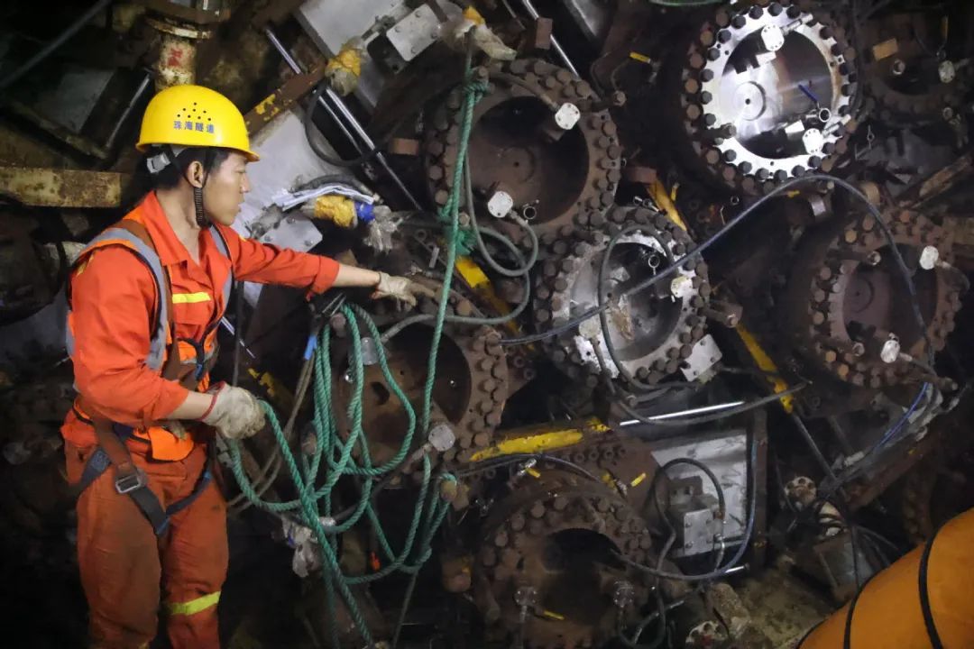 当日,建设者正在为盾构机更换磨损的刀片。据中铁隧道局项目书记介绍,目前,项目部克服海底施工存在的“上软下硬”的困难,盾构区间掘进进度已达90%。