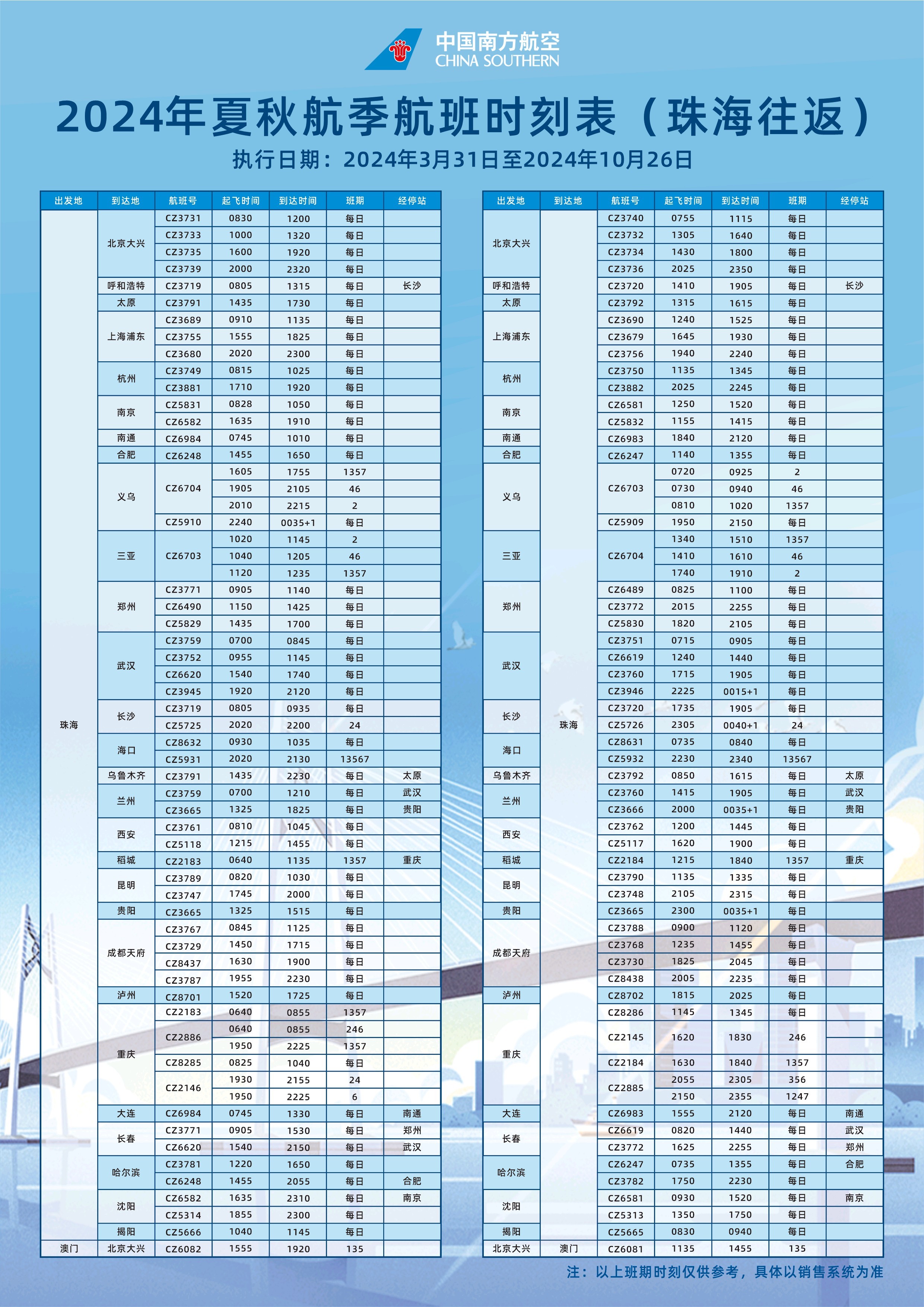 自3月31日起,民航将执行夏秋航班计划。为满足广大旅客日益增长的出行需求,南航珠海公司将对航班计划进行调整。届时,新航季南航在珠海机场的周始发计划航班量将达到196班,同比2023年夏秋航季增加28班,创历史新高。
