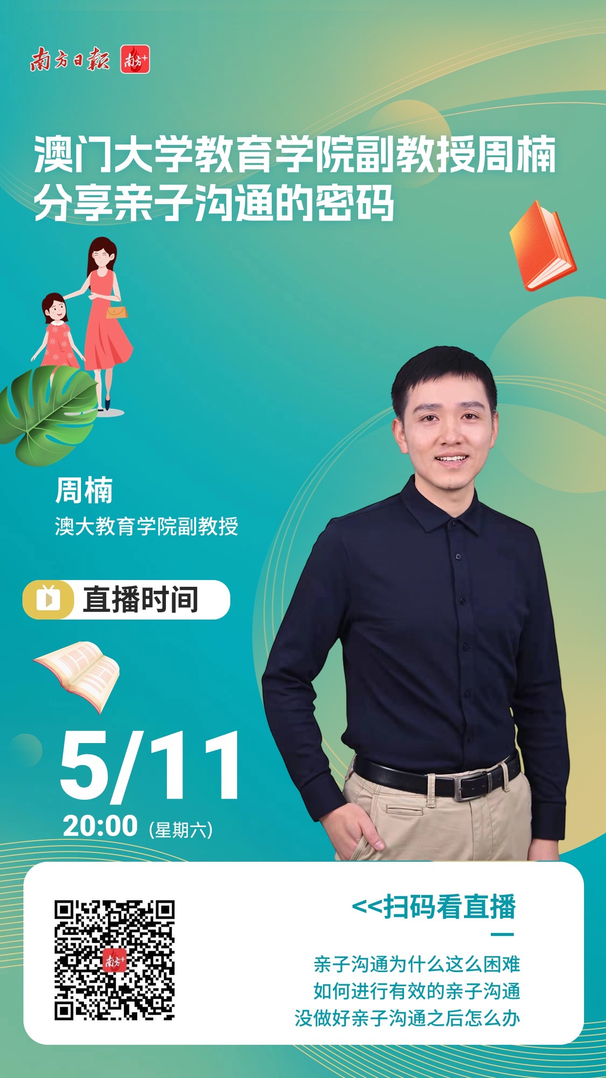 本期公开课邀请澳门大学教育学院副教授、博士生导师周楠主讲,将于2024年5月11日20:00在南方+客户端首播。