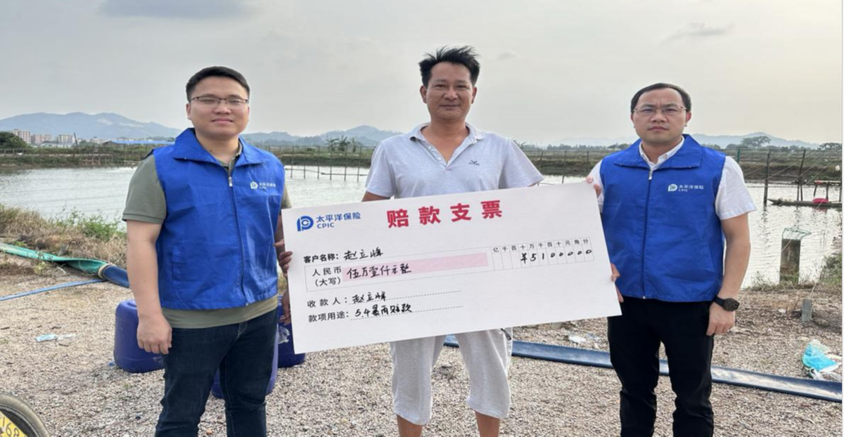 5月10日,记者从中国太平洋财产保险股份有限公司珠海中心支公司(以下简称中国太保产险珠海中支)获悉,根据气象局数据监测,5月4日斗门区斗门镇、井岸镇、白蕉镇、莲洲镇及白藤头街道最高降雨量数据均超过理赔阈值,中国太保产险珠海中支第一时间启动应急预案,前往受灾严重区域进行实地走访并核实客户损失情况,并在5月6日获取气象报告后立即开启理赔绿色通道,对符合本次受灾条件的水产养殖户进行了定损和赔偿。