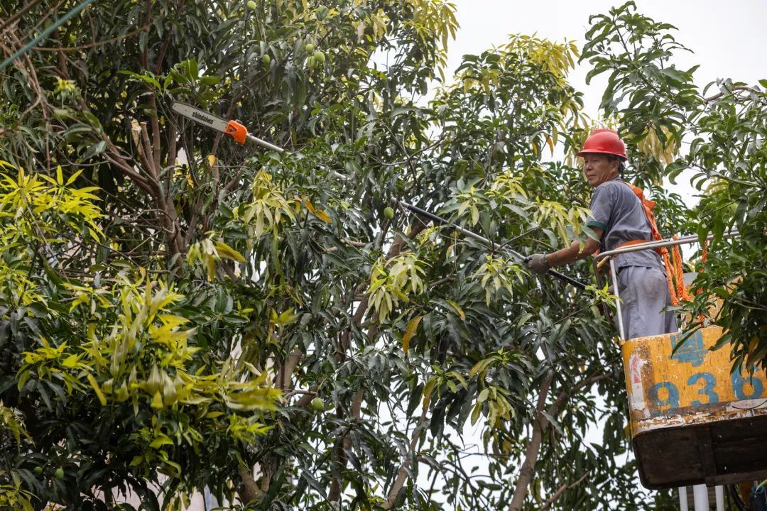修剪绿化芒果枝条,
