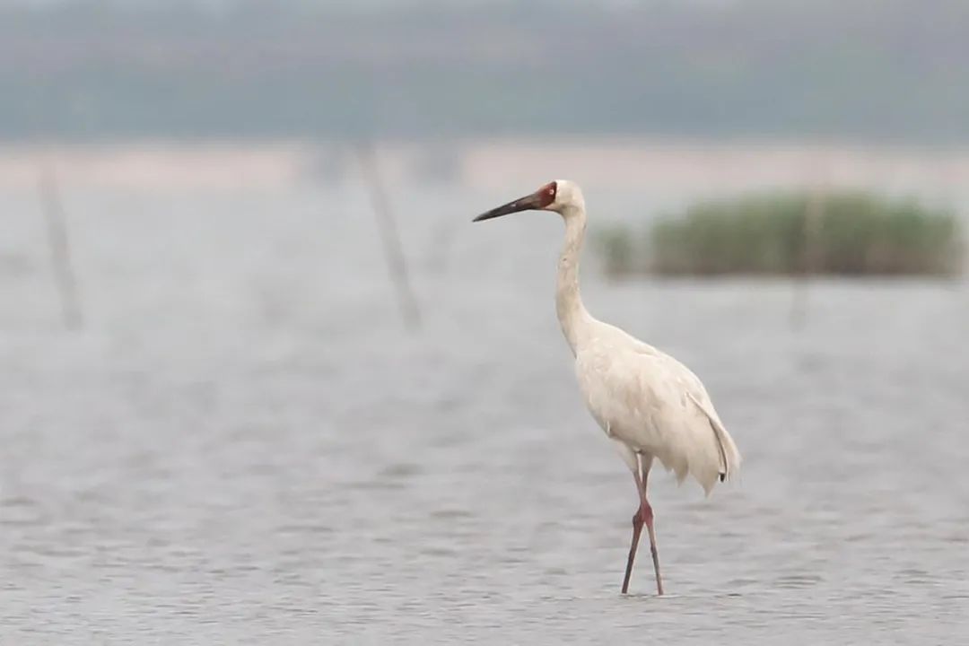 ▲国家一级保护动物-白鹤现身斗门乾务镇。张福庆/摄