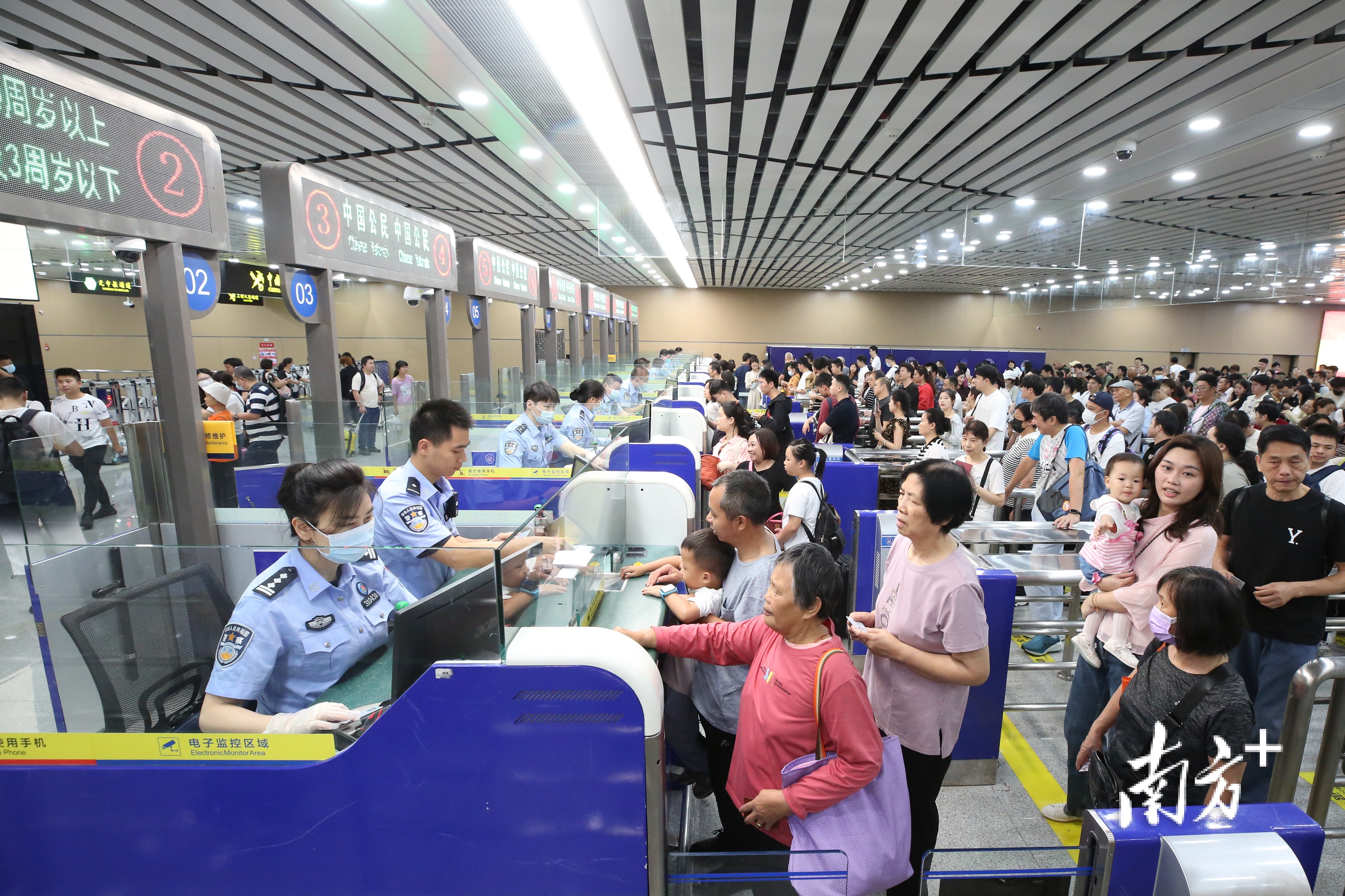 随着国内高考的结束以及粤澳两地中小学陆续步入暑假,暑期跨境客流高峰也给边检部门带来了一场近3个月的“硬仗”。对此,拱北边检站已经做好了充分的应对准备。一方面提前做好了勤务部署安排,通过科学的勤务组织模式,在增加现场执勤警力部署的同时保障机动备勤警力充足,确保极端客流情况下,出入境1号、2号大厅全部查验通道能正常投入使用,提升口岸每小时吞吐量,达到快速削峰效果。另一方面,检验、升级现有硬件设施、设备,并计划针对性推出通关便利举措,提升粤澳两地“常旅客”通关效率,最大限度缩减跨境旅游群体排队候检时间,严格落实国家移民管理局关于中国公民排队候检时间不超过30分钟的承诺。