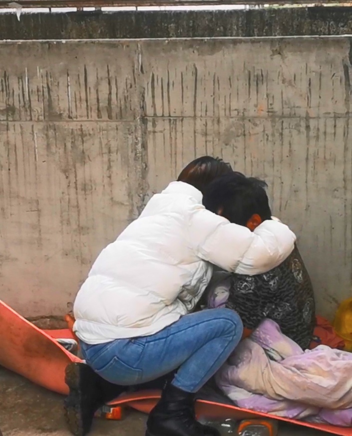 在这里,还有这样一些人,或是务工不着、寻亲不遇而临时受困,或是生活受挫、误解嫌隙而不愿回家,或是为了节省房租而露宿街头。十四村外的一处人行天桥,成为了替他们遮风挡雨的一个小小聚集点。