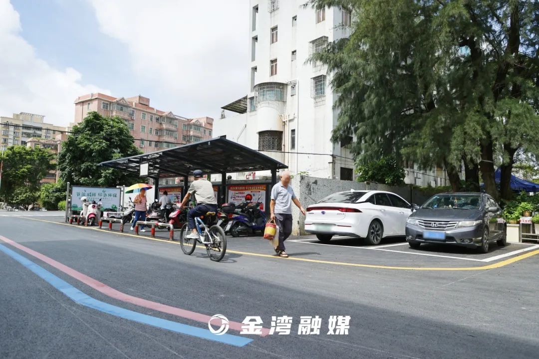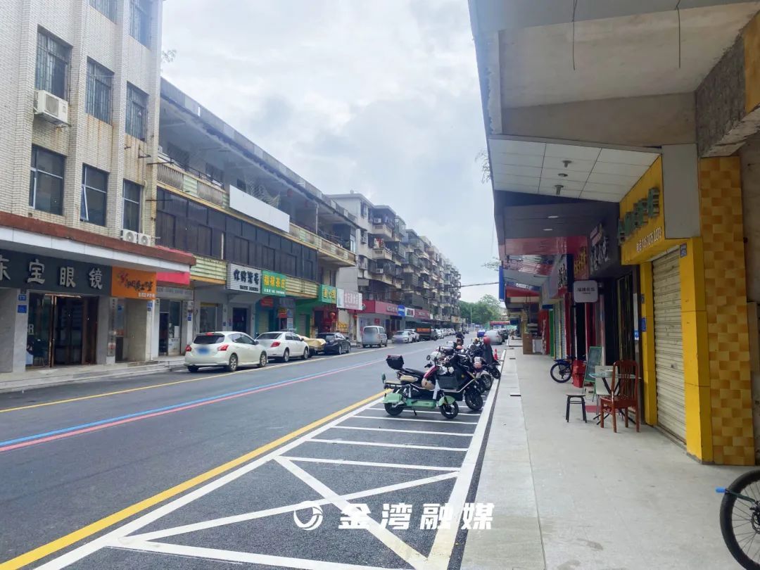 崭新平坦的沥青道路、清晰亮眼的红蓝标线、两侧的商铺台阶干净整洁、还多了不少新划分的停车位……这就是金湾区平沙镇改造升级后的新步行街,位于立新社区的平塘大街。