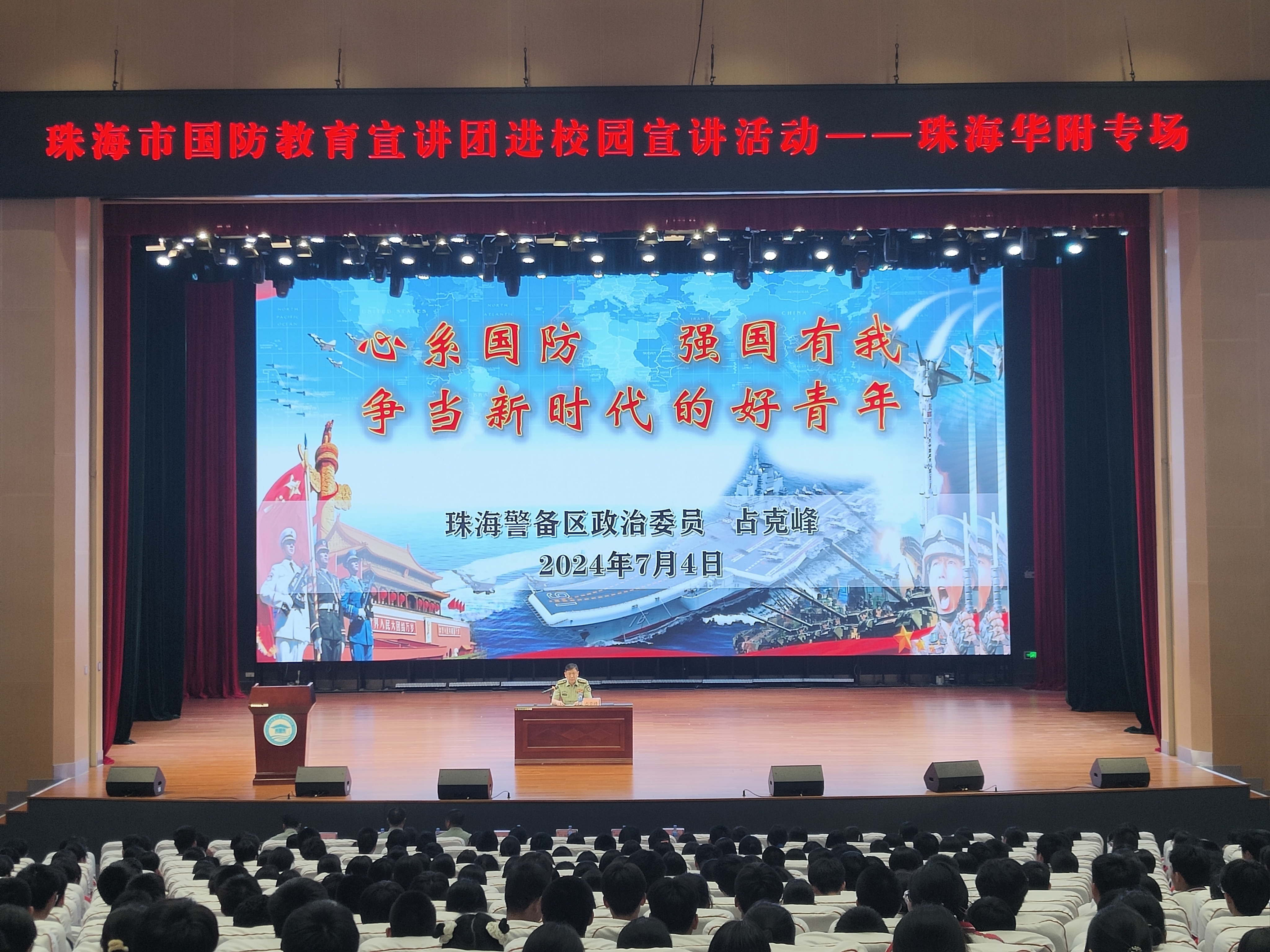 为深入推进国防教育,进一步增强青年学生国防意识,激发爱国拥军热情,树立强国报国之志,7月4日,珠海市委常委、警备区政治委员占克峰前往华中师范大学珠海附属中学开展国防教育宣讲活动。