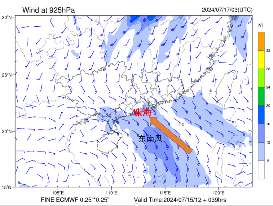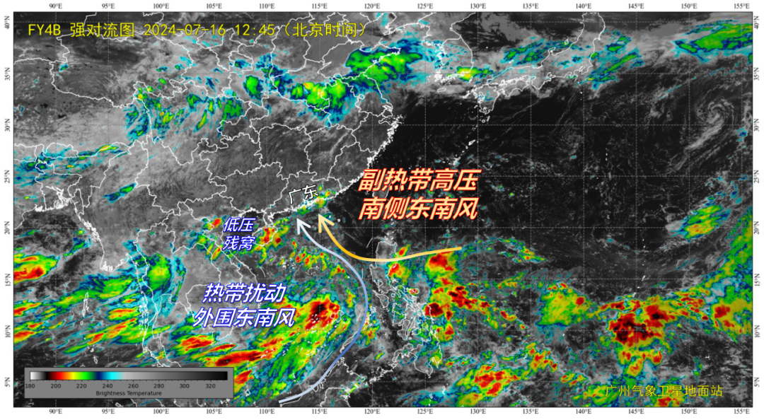 目前广东处于副热带高压主体西南侧