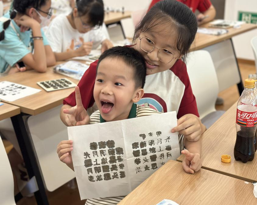 活动现场,水湾社区新时代文明实践站社工结合宣讲视频,为孩子们讲解活字印刷术的历史由来、技术原理和科学知识,并带领孩子们体验活字印刷《静夜思》。在社工的指引下,孩子们从拣字、排字、刷墨、铺纸、滚印,深入地了解活字印刷的基本原理与流程,沉浸在活字印刷的世界里,感受着年经久远的字块散发出的浓浓墨香。随后,孩子们一同朗诵印刷作品——《静夜思》,与古人对话,感受千年文化的底蕴。