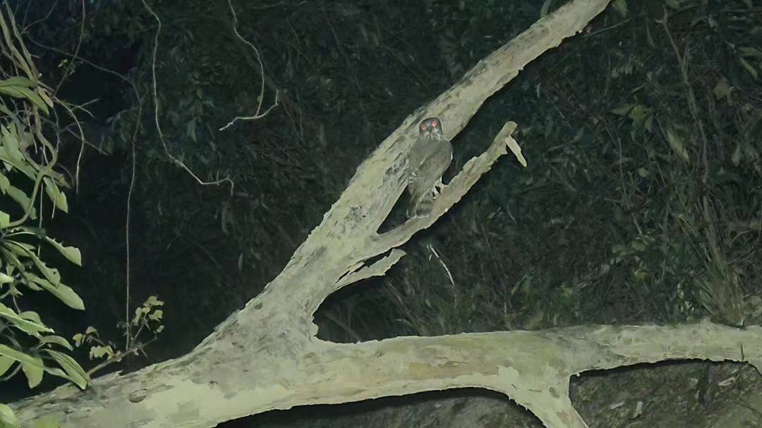 7月21日,记者从珠海市观鸟协会获悉,受横琴粤澳深度合作区城市规划和建设局委托,珠海市观鸟协会持续在合作区内开展陆生野生脊椎动物调查。近日,协会生态调查员在大横琴山上定期回收红外相机时,惊喜发现一只中小型猫头鹰在捕食昆虫的有趣画面,经中山大学生态学院刘阳教授鉴定,该物种为日本鹰鸮(Ninox japonica)。经查阅有关文献资料和咨询珠海市自然资源监测中心工作人员,日本鹰鸮在珠海从未有过记录,为珠海市鸟类新纪录。
