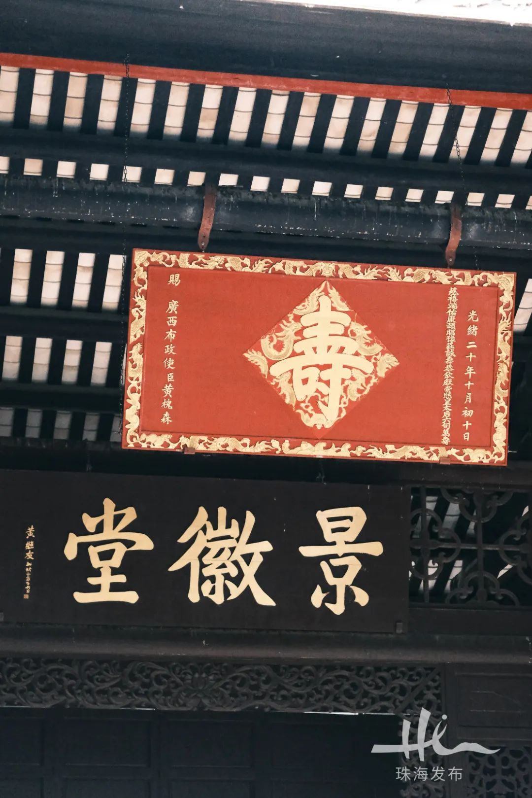 分别悬挂于黄氏大宗祠