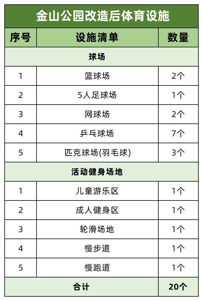 位于金湾航空新城的金山公园已于近期启动升级改造,将通过在原公园植入更多体育功能板块,打造金湾体育公园(全民健身广场)。改造工程完工后,金山公园内体育设施将增至20个,设施全部免费使用,采用预约制管理。