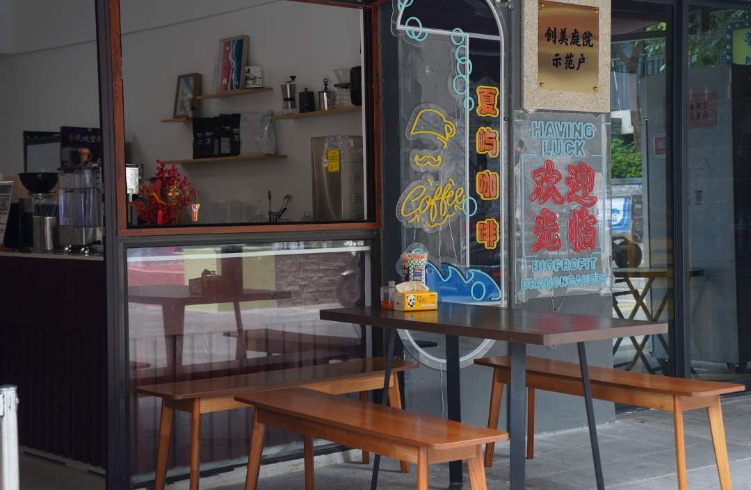 外伶仃岛上一角,碧海蓝天与咖啡文化相融成独特的海滨风光。寻着港风招牌推门入户,伴随阵阵咖啡香气,绿意盎然、鸟语花香,方寸之间移步换景,仿佛置身桃源,岛民、游客三三两两,在这方小院前乘凉闲谈,闲逸静美,好不快活。