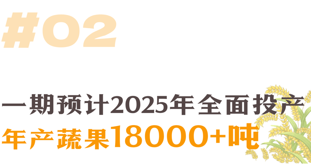 预计2025年全面投产,一期种植年营收约1.1亿元,可年产高品质绿色蔬果18000吨以上,日产蔬果约5-6万公斤,每个季节均可供应30余个品类的蔬果,丰富广大珠海及大湾区市民的「菜篮子」。