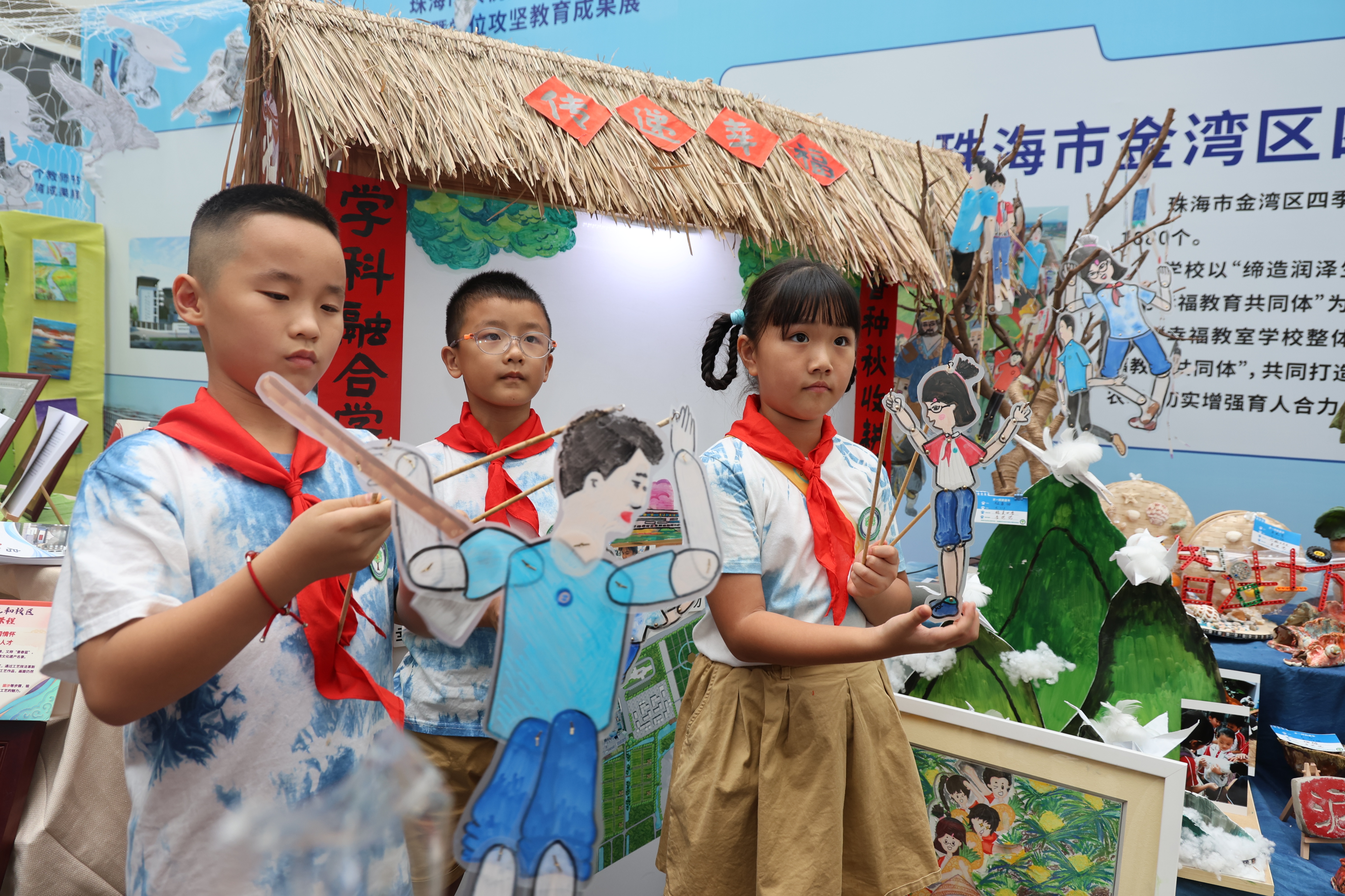 为了让市民更深入地了解珠海教育情况,本次教育成果展还特别设置了学校风采展示区。在PVC水管上绘制的环保手工画、学生自制的智能除甲醛新风系统、校园原创皮影故事……活动现场,21所来自珠海各区镇的中小学、幼儿园搬出“看家本领”布展,齐齐展示学校荣誉、教师成果、学生作品、校园文化等,现场展品形式丰富、内容多样。