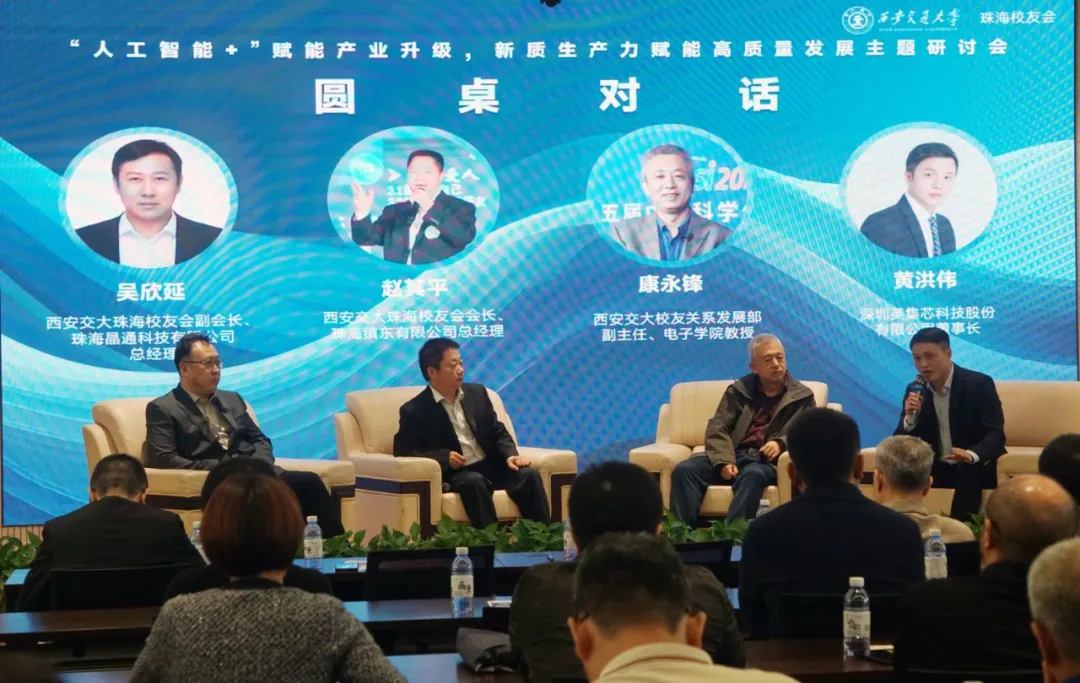 ▲今年3月,西安交通大学珠海校友会举行“‘人工智能+’赋能产业升级,新质生产力赋能高质量发展”主题研讨会,多家民营校友企业负责人齐聚共谋发展。