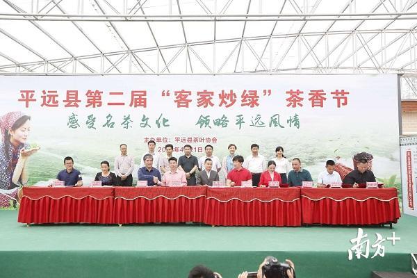 雨洗青山四季春,高山云雾出名茶。4月21日,平远县第二届“客家炒绿”茶香节在海拔948米的石正云雾茶园举行,活动现场有5家茶企达成合约,以每公斤750元的价格,签订了约3.3万公斤,价值2500万元的购销合同。