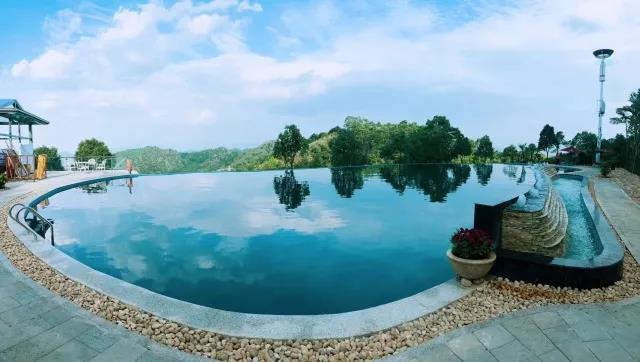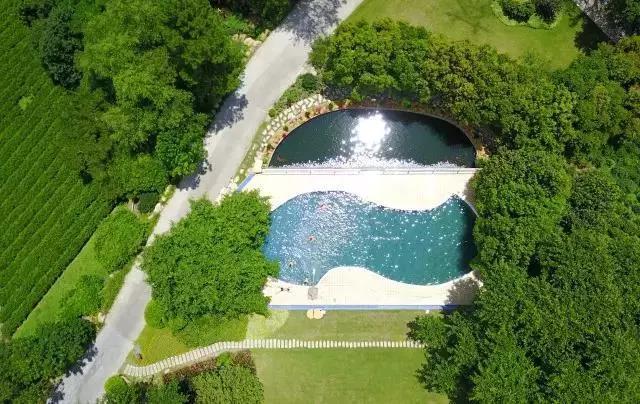 游泳池在麓湖山文化产业园里面,水特别的清凉,且周围绿树环绕,让人产生一种置身于山水之间的错觉。
