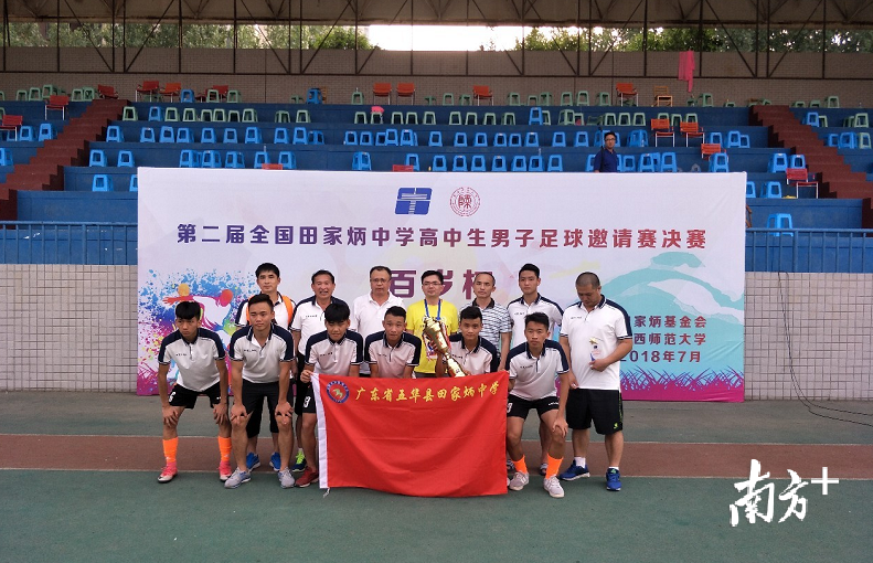 据了解,今年5月五华田家炳中学校足球队在湖北襄阳赛区比赛中以小组赛第一名的身份进入八强。在7月11日的八强赛中以5:3淘汰云南玉龙田中队进入四强。在7月12日半决赛中,发扬五华阿“哥硬打硬,实打实”精神和拼劲,面对宁夏田中队的身高优势,沉着冷静,最终追平比分拖入点球大战,最后以点球比分7:6(1:1)战胜宁夏田中昂首进入决赛。