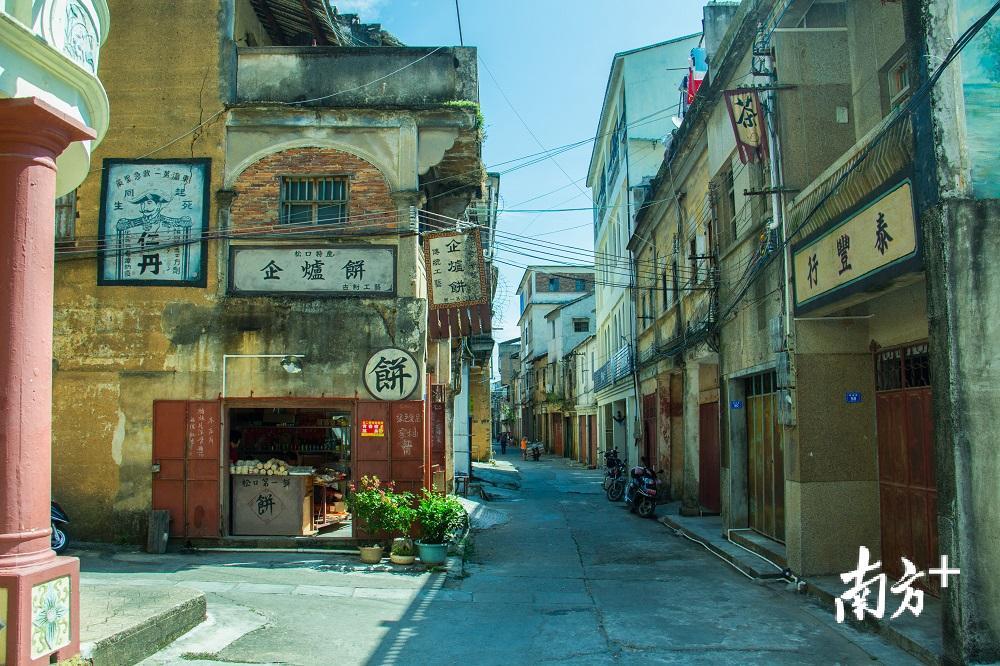 骑楼楼面上雕刻,充满南洋风情的灰塑几何图案仍然清晰可见,诉说着这个古镇与海外千丝万缕的联系。