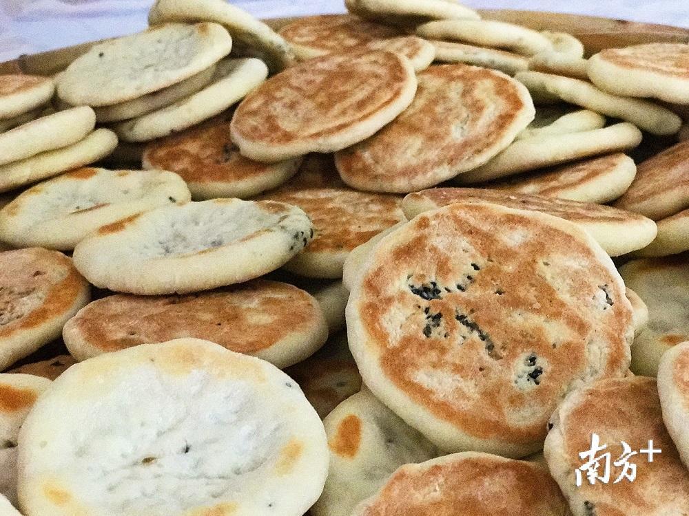 企炉饼是松口镇的客家传统小吃,因面香浓郁,香甜可口而深受人们特别是海外华侨的喜爱。主要材料是面粉、橙糖、砂糖、白芝麻、黑芝麻等,古时候制作企炉饼贴在炉壁上烤制,因而得名企炉饼。