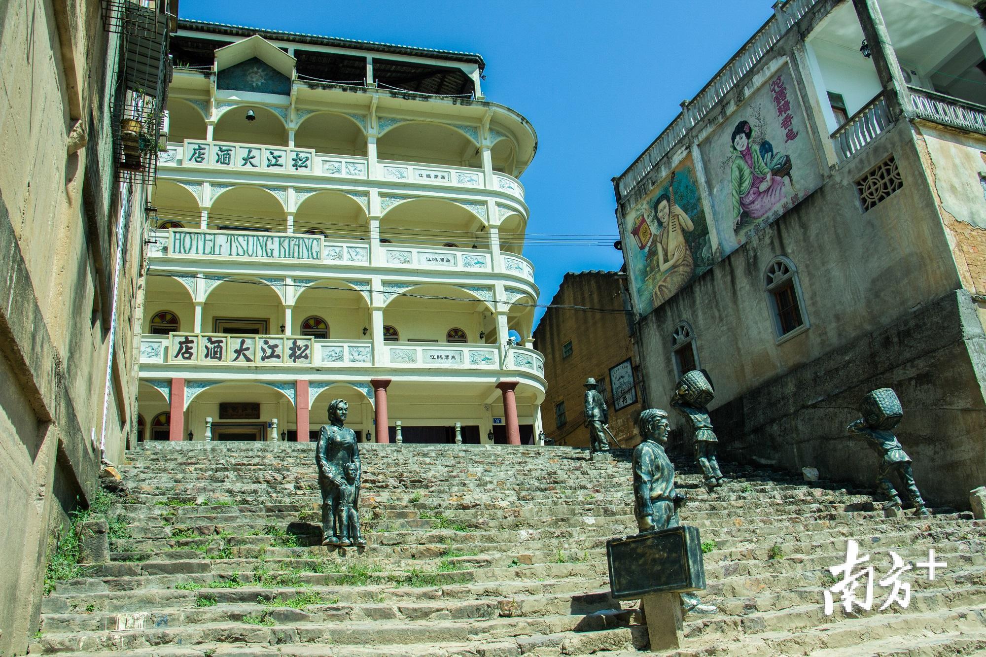 骑楼楼面上雕刻,充满南洋风情的灰塑几何图案仍然清晰可见,诉说着这个古镇与海外千丝万缕的联系。