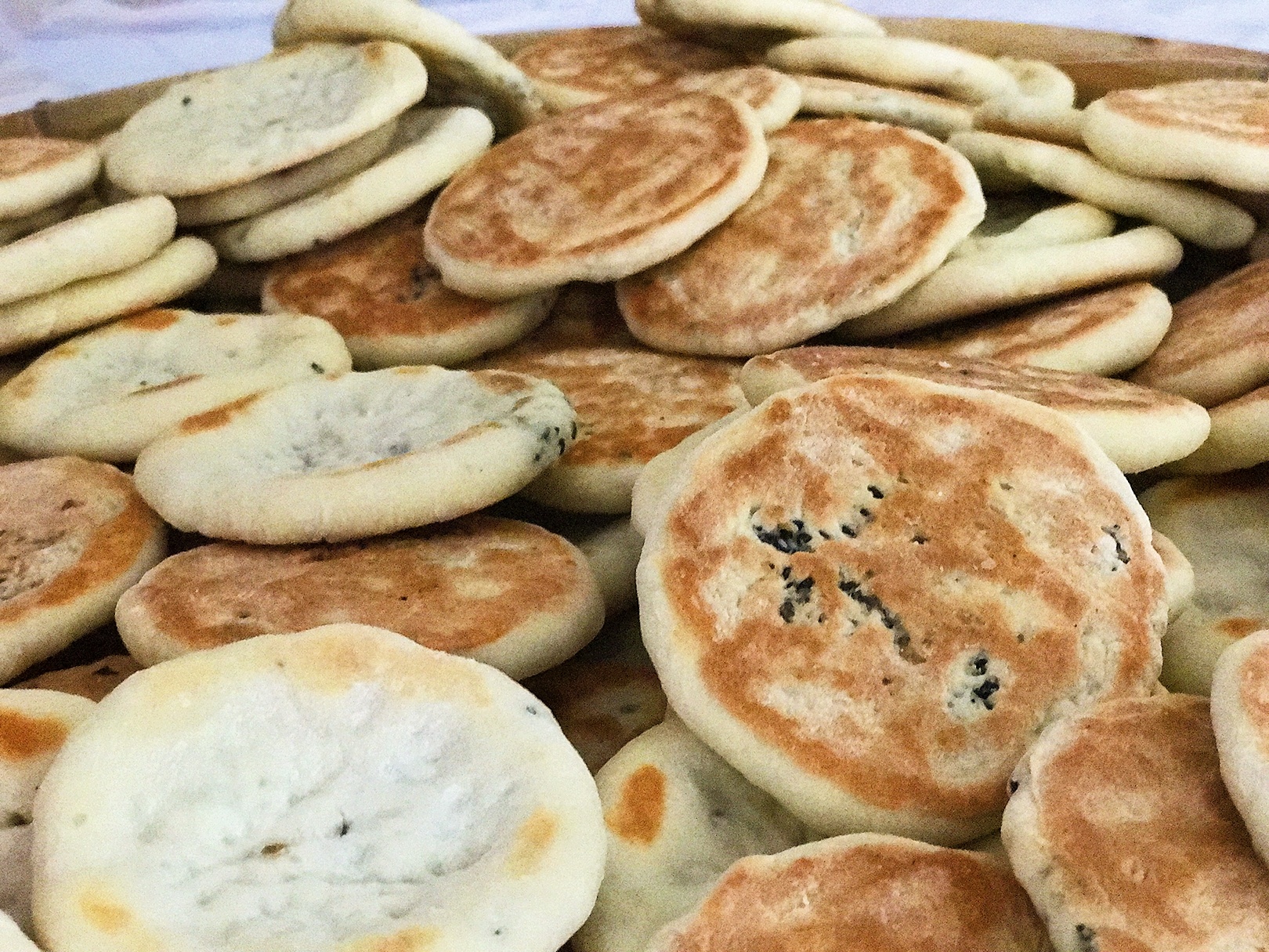 企炉饼是松口镇的客家传统小吃,因面香浓郁,香甜可口而深受人们特别是海外华侨的喜爱。主要材料是面粉、橙糖、砂糖、白芝麻、黑芝麻等,古时候制作企炉饼贴在炉壁上烤制,因而得名企炉饼。