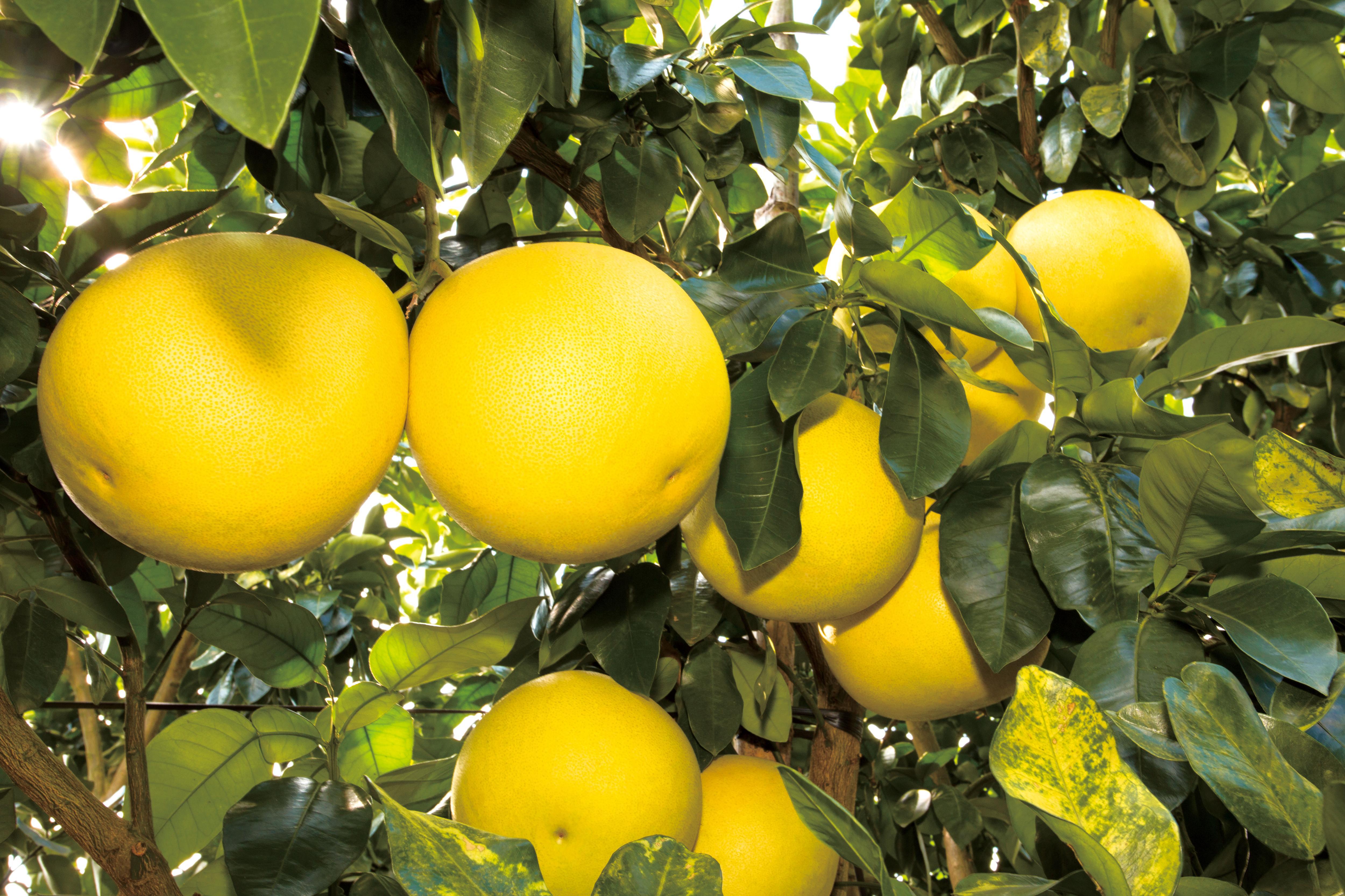 柚子果实大,球形或近于梨形,呈柠檬黄色,果肉白或红色,隔分成瓣,分甜蜜和酸甜两种口味,皮厚耐藏易保存,故有“天然水果罐头”之称。