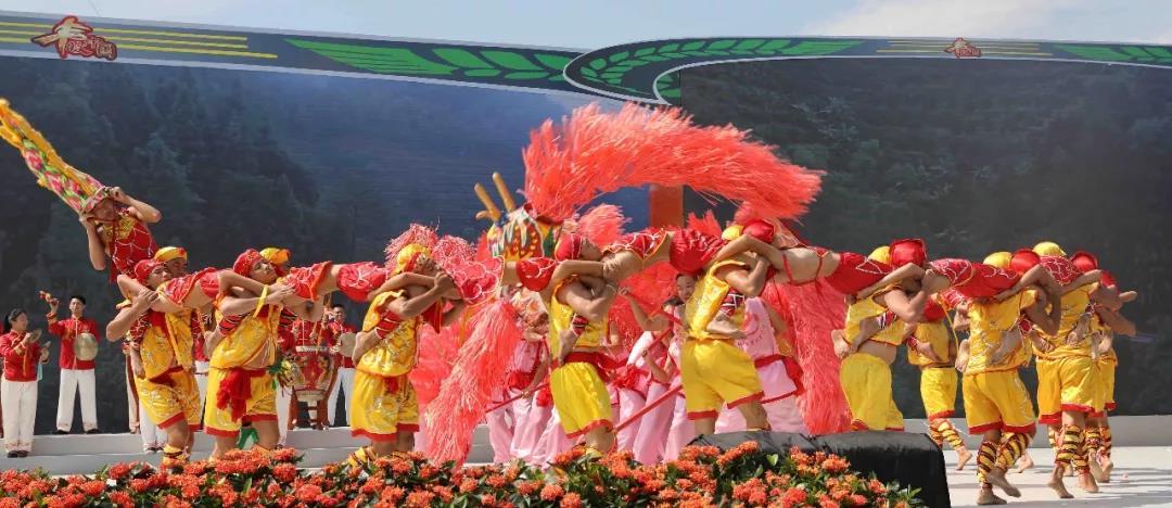 造型独特、古色古香的泰安楼,迎来了秋日丰收的喜悦。鲤鱼灯、花环龙、舞狮、客家大锣鼓、汉剧汉乐、青花瓷舞蹈,这些汇聚了大埔独具客家特色的民俗表演齐上阵!