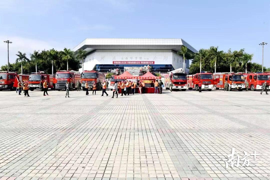 在剑英体育馆广场,消防队员和消防志愿者服务队还向现场群众、临街店铺宣传消防安全知识、讲解消防车辆器材使用情况,并发放消防安全宣传手册等,多措并举提升群众消防意识和火灾应对能力。