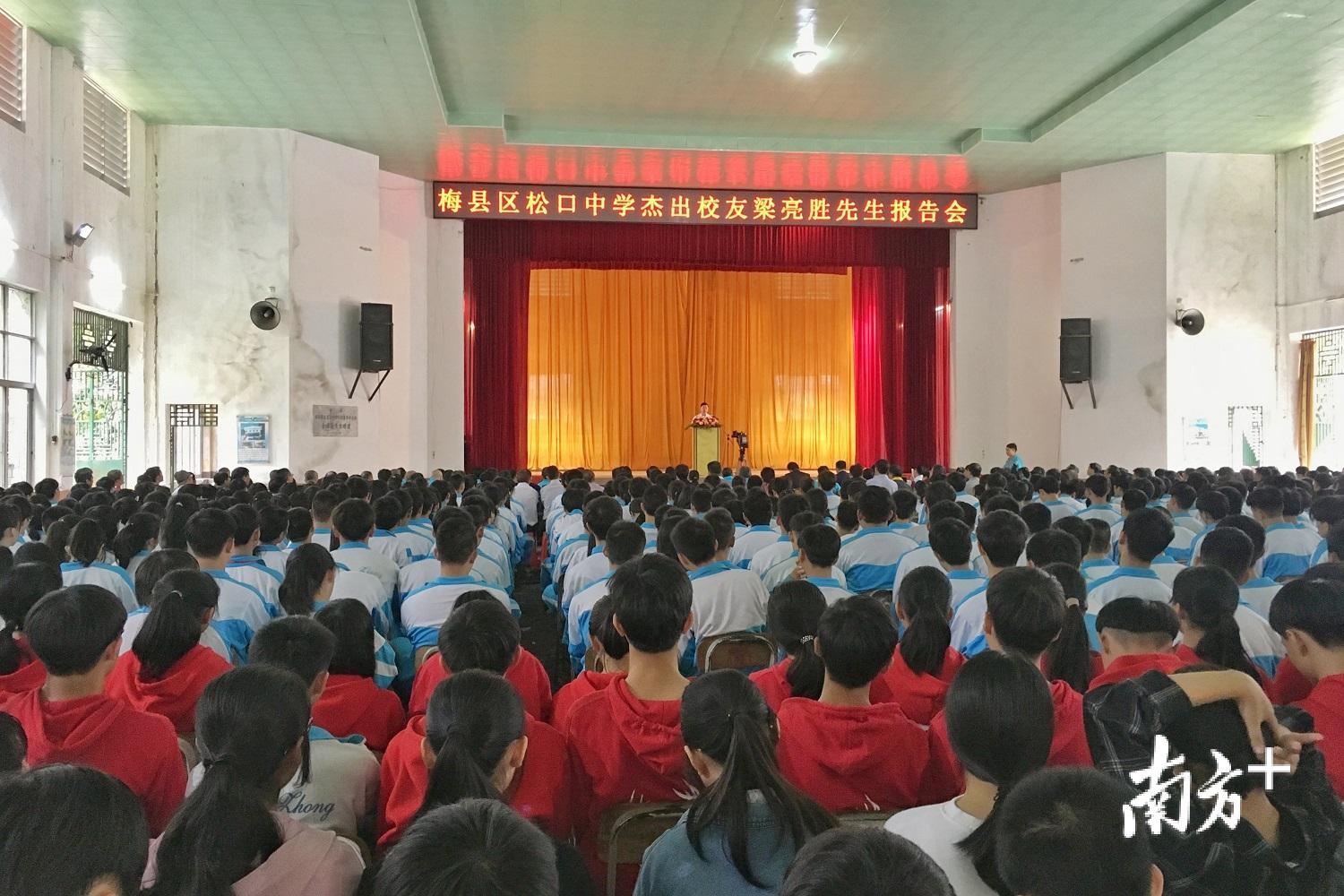 随后,梁亮胜先生为学生们作了一场生动的报告会。梅县区委书记钟光灵主持报告会,对梁亮胜先生、古尔夫女士伉俪及各位校友的到来表示欢迎,并对长期关心家乡建设、支持学校发展的各界人士表示感谢。