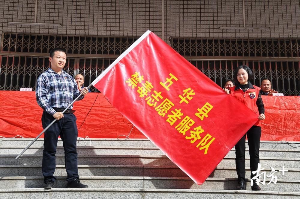 启动仪式现场,五华县志愿者联合会会长、禁毒志愿者代表严满凤倡议广大师生从自身做起,筑牢拒毒防线,主动当好禁毒工作“宣传员”。随后,五华团县委书记杨文为五华县禁毒志愿者服务队授旗,县禁毒委副主任、县公安局副局长张长安呼吁社会各界行动起来,积极加入禁毒志愿者队伍,为建设平安五华贡献青春力量。