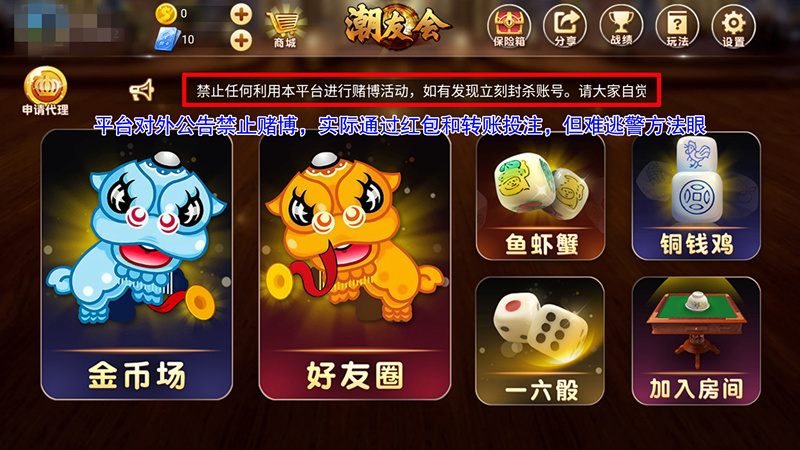 近日,丰顺县公安局网警大队在工作中获得线索,一犯罪团伙利用手机APP进行网络赌博,警方随即展开深入侦查经营。经前期缜密侦察,警方发现,犯罪团伙广泛撒网吸引网民进入微信群,利用手机APP“潮友会”进行“鱼虾蟹”赌博,并通过微信红包、支付宝转账的方式进行投注收款。