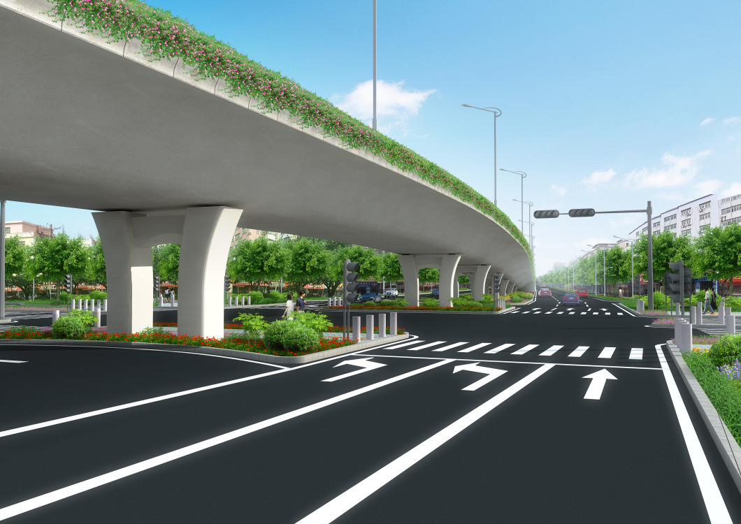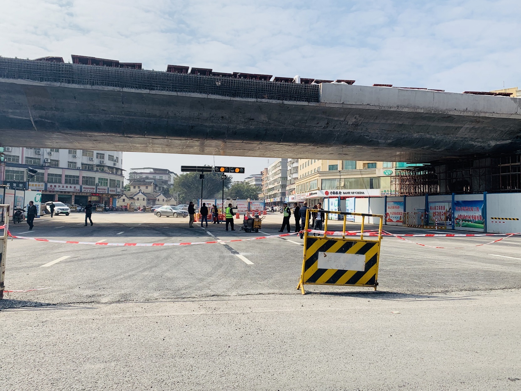 记者在现场看到,施工方已完成桥梁的3片现浇箱梁的浇筑并张拉,长度100米,桥梁模板支架已拆除完毕。在十字路口交叉处,已设置了几个红绿灯,确保交通有序流畅。