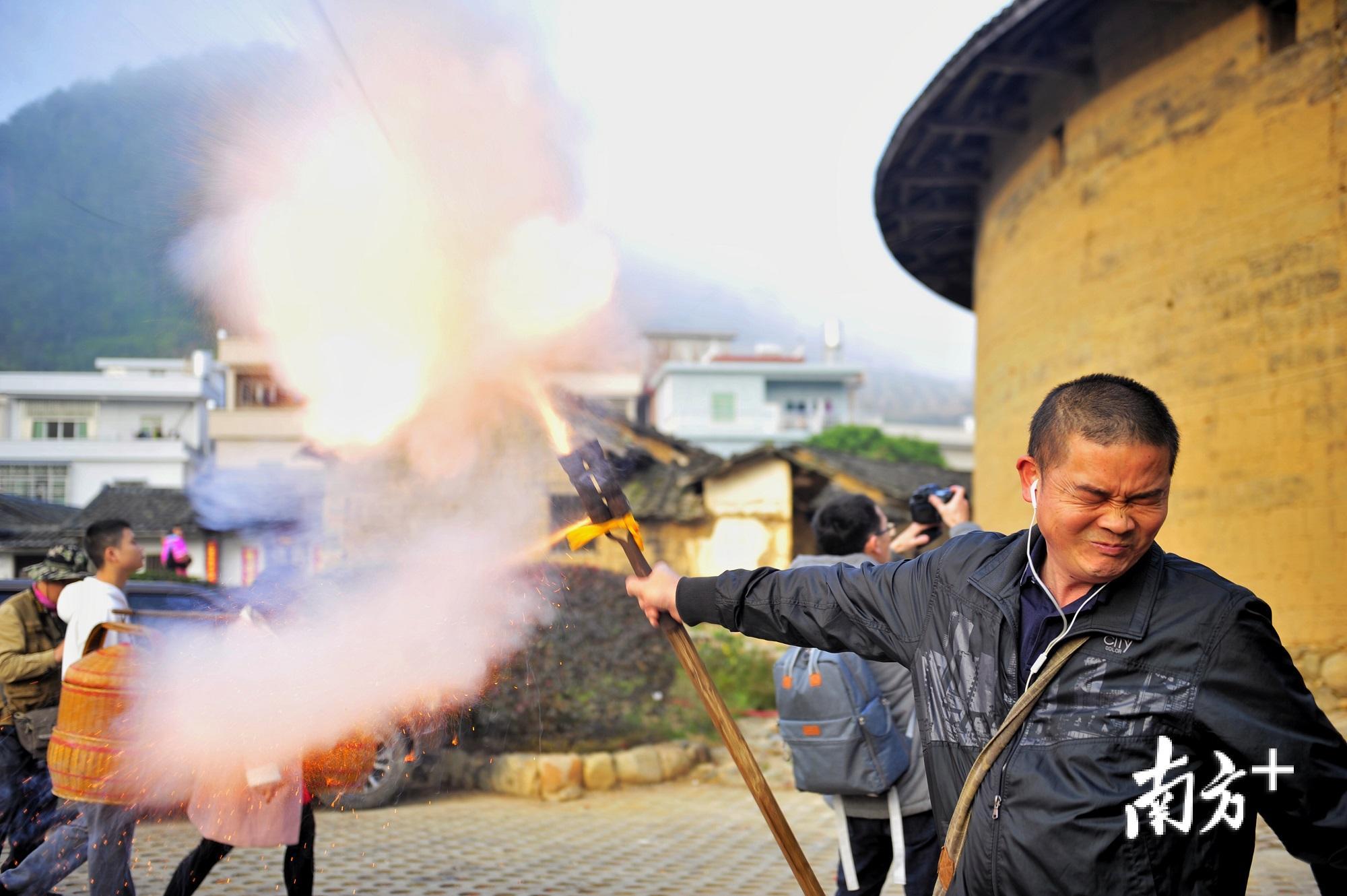 一声爆竹声响起,接着鼓声隆隆,广东第一大土圆楼梅州大埔花萼楼的祈福仪式正式开始。每年正月初三,花萼楼都会举行盛大的祈福活动,以祝福全村村民在新的一年风调雨顺、五谷丰登、安乐祥和、幸福健康。