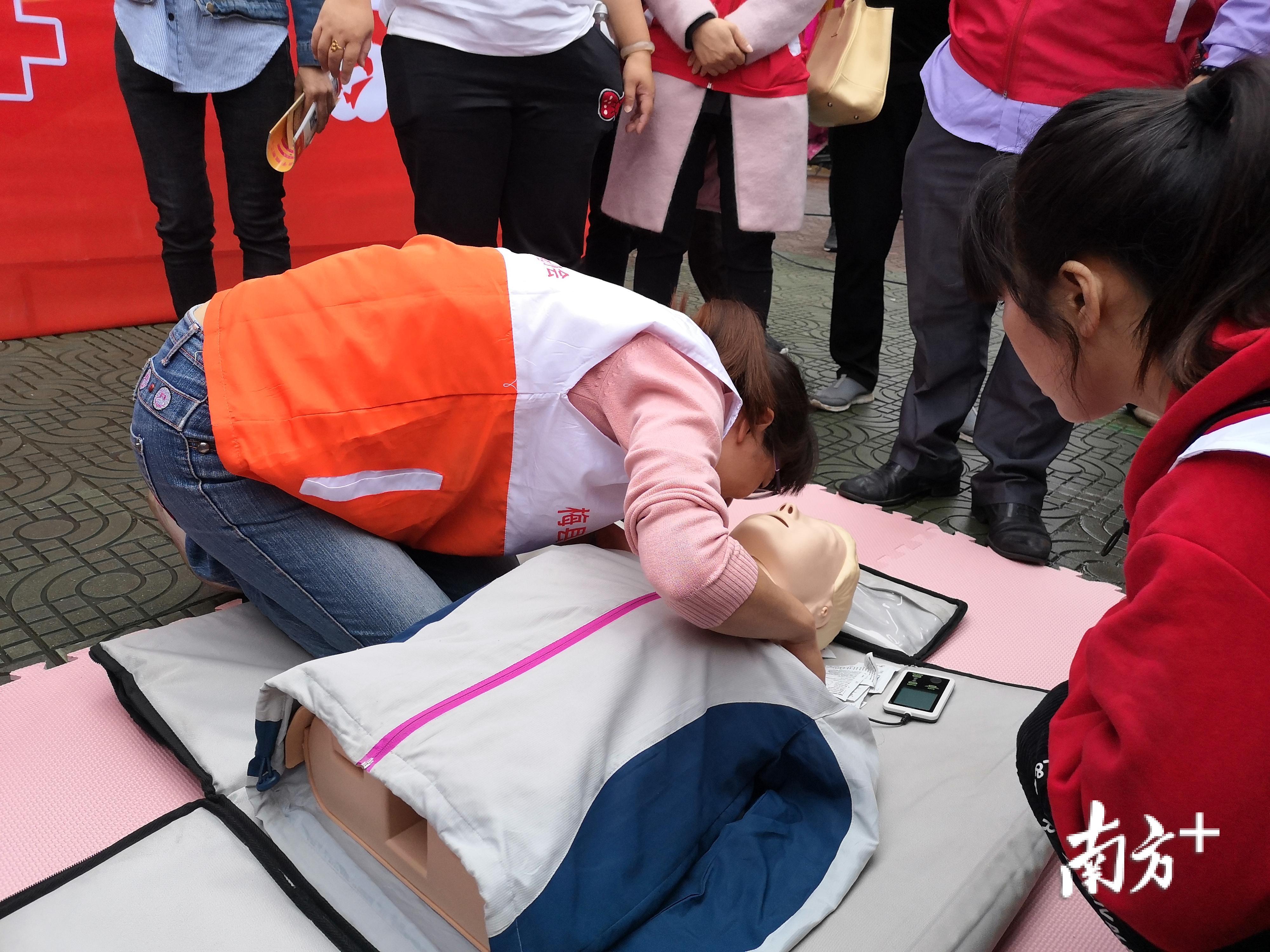 “梅州是地贫高发区,每年都会有地贫宣传活动,我们来参加义诊,了解抢救知识。”市民王女士说她跟随志愿者现场体验、学习了自救互救技能。