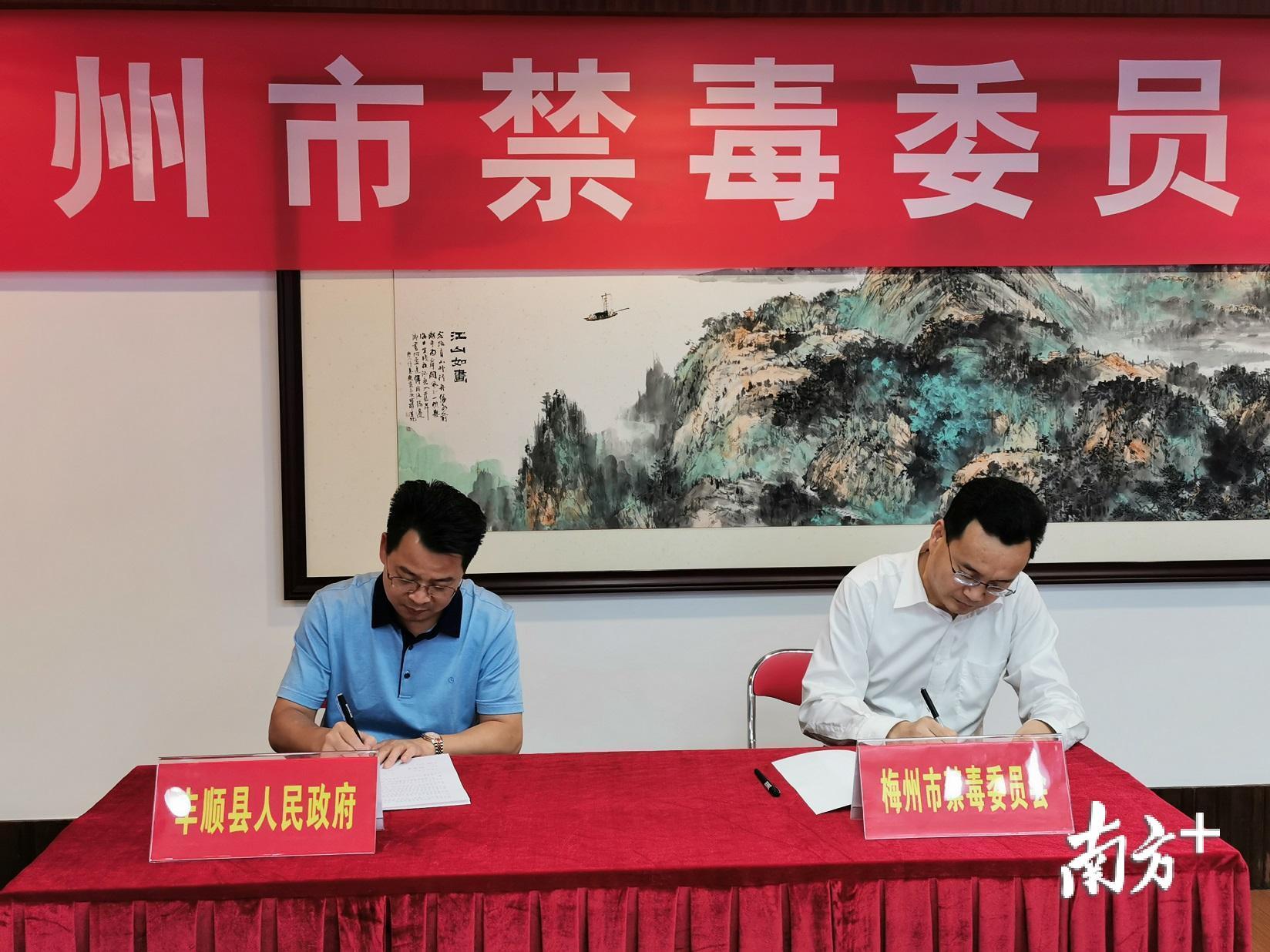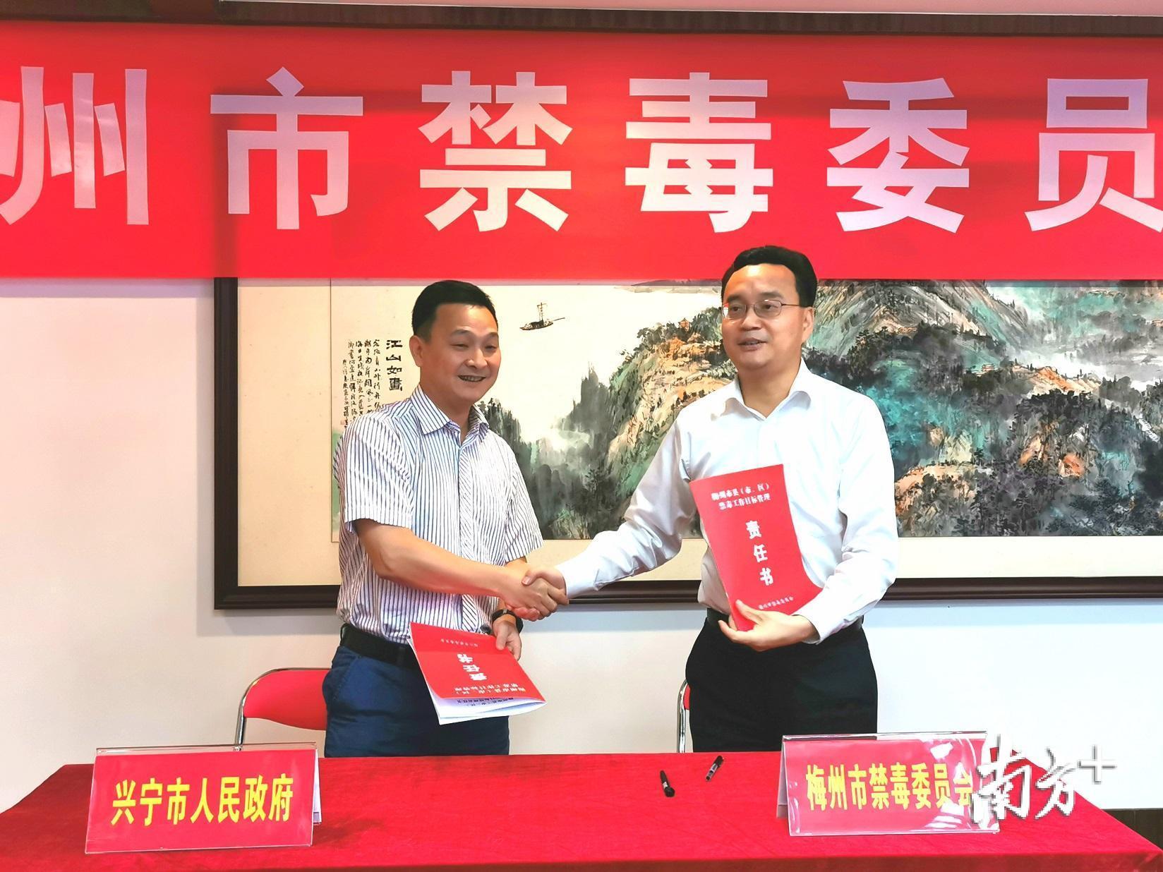 会上,梅州市政府与兴宁市、丰顺县、市教育局、团市委签订《禁毒工作目标管理责任书》。