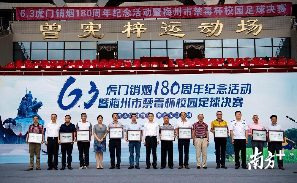 随后,与会人员还到梅县东山中学参加“6·3”虎门销烟180周年纪念系列活动。市长张爱军,市关工委主任何正拔,副市长张晨、宁惠军等参加活动并为2019梅州市禁毒杯校园足球获胜球队颁奖。