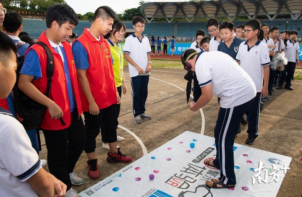 记者在现场看到,场地周围设置了各类禁毒宣传展板和海报,学生们围聚在一起,聚精会神地了解毒品的种类、毒品的危害等禁毒知识,还有不少学生亲身体验VR禁毒小游戏。