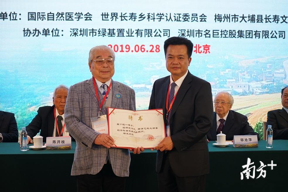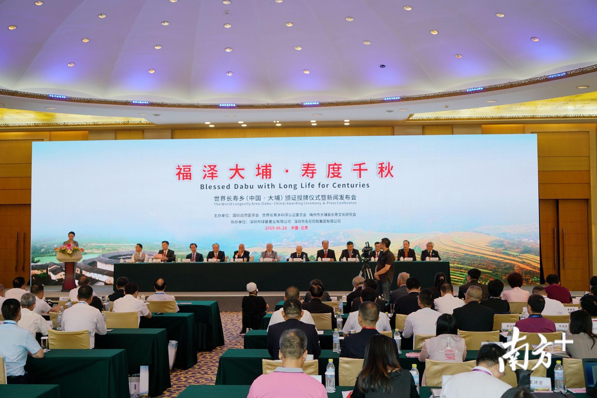 6月28日上午,由国际自然医学会、世界长寿乡科学认证委员会、梅州市大埔县长寿文化研究会共同主办的世界长寿乡(中国·大埔)颁证授牌仪式暨新闻发布会在北京举行,会上正式授予广东大埔县“世界长寿乡”称号,成为国际自然医学会认定的世界第八个“世界长寿乡”,梅州继蕉岭县后又一个“世界长寿乡”。