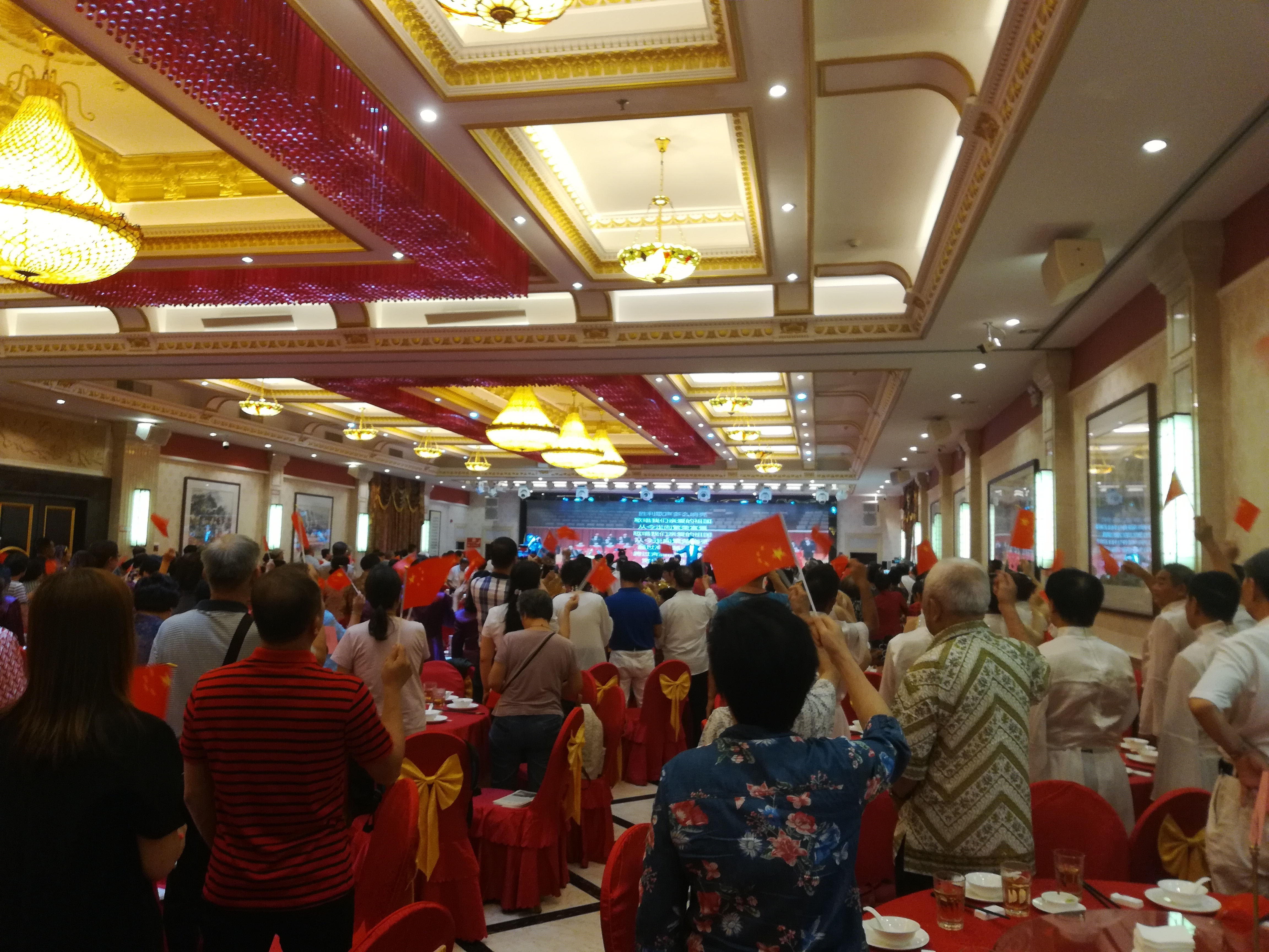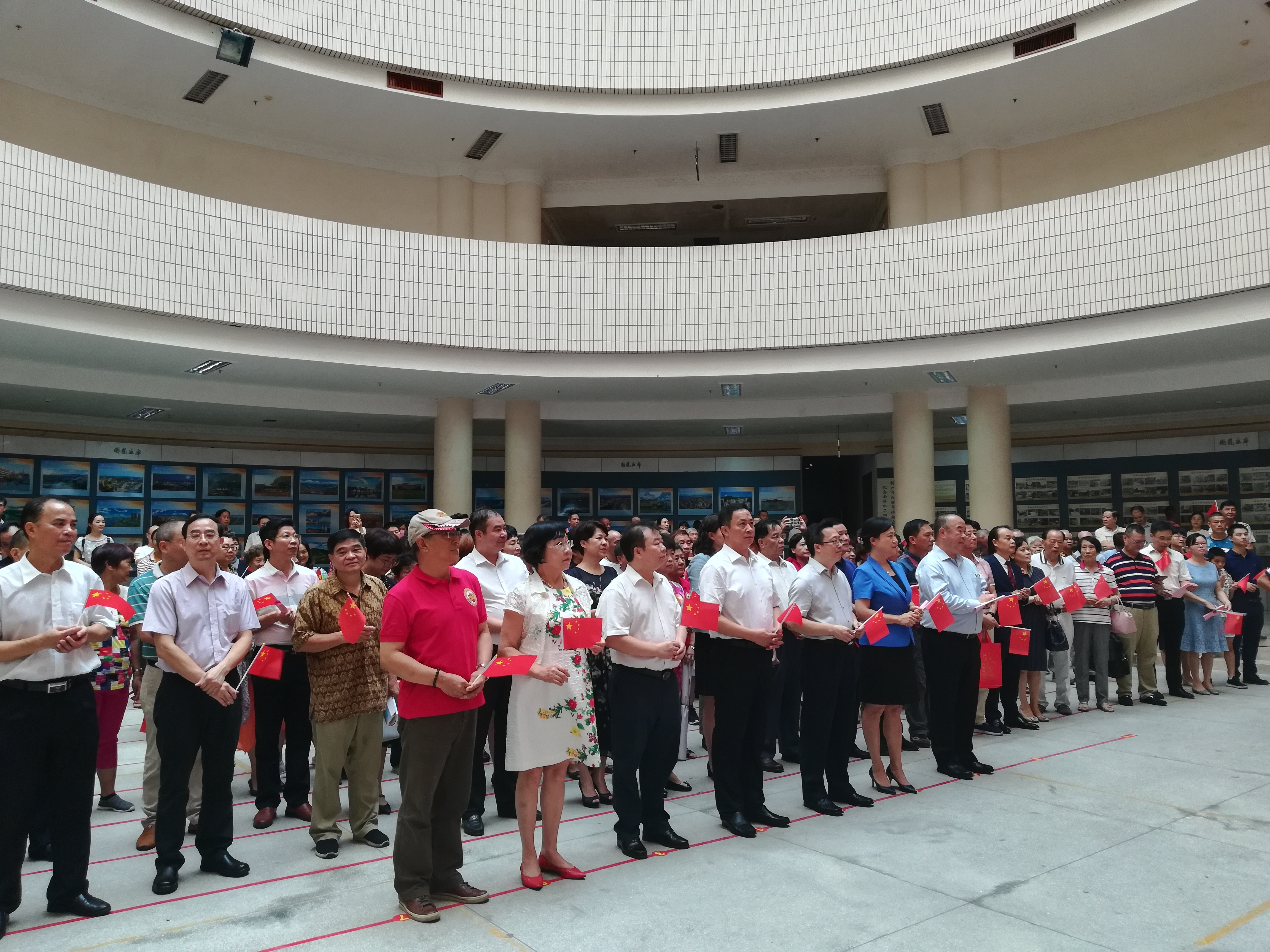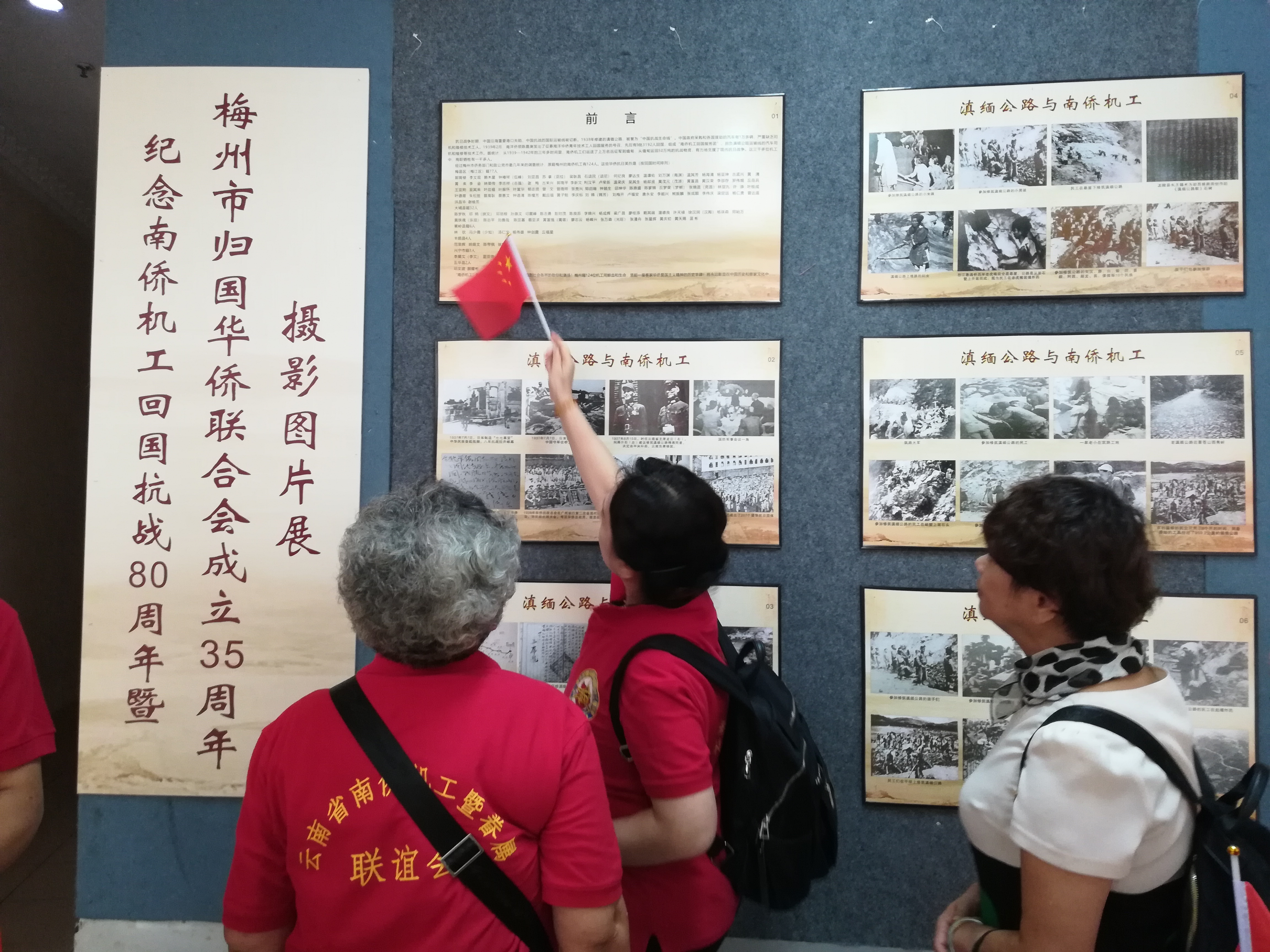 “我和我的祖国,一刻也不能分割,无论我走到哪里,都流出一首赞歌……”活动现场,全体人员挥动手中小红旗,合唱歌曲《我和我的祖国》。9月8日上午,纪念南侨机工回国抗战80周年暨梅州市侨联成立35周年摄影作品展在梅州市华侨博物馆举行。