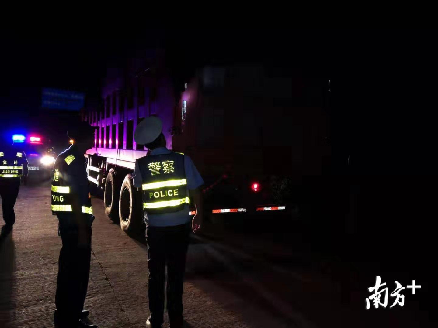 9月5日晚,五华县公安交警、交通在省道228线开展联合执法,22时40分许,执法民警发现一辆牌号为赣K89***的大货车从华城镇往水寨镇方向驶来,民警示意该车靠边停靠接受盘查。