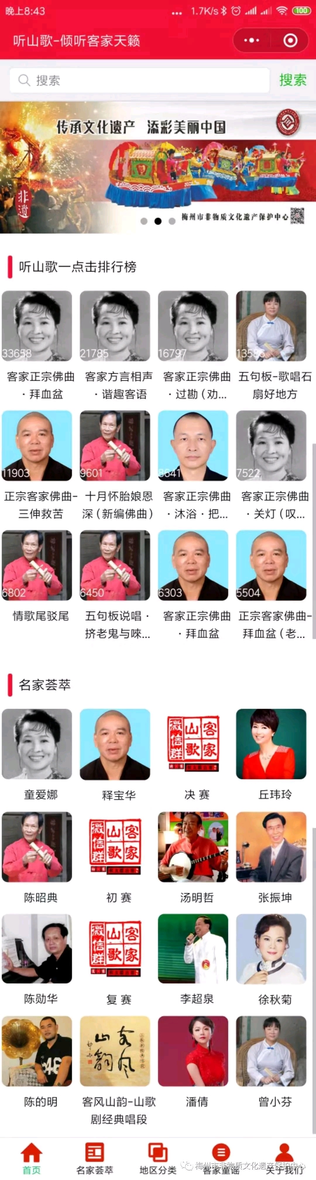 日前,记者从梅州市文化馆、梅州市非物质文化遗产保护中心获悉,“听山歌”小程序正式上线,这是梅州市文化馆、梅州市非物质文化遗产保护中心在2020年新春带给全球客家人最诚挚的礼物,献给热爱传统文化、热爱非遗的市民朋友。