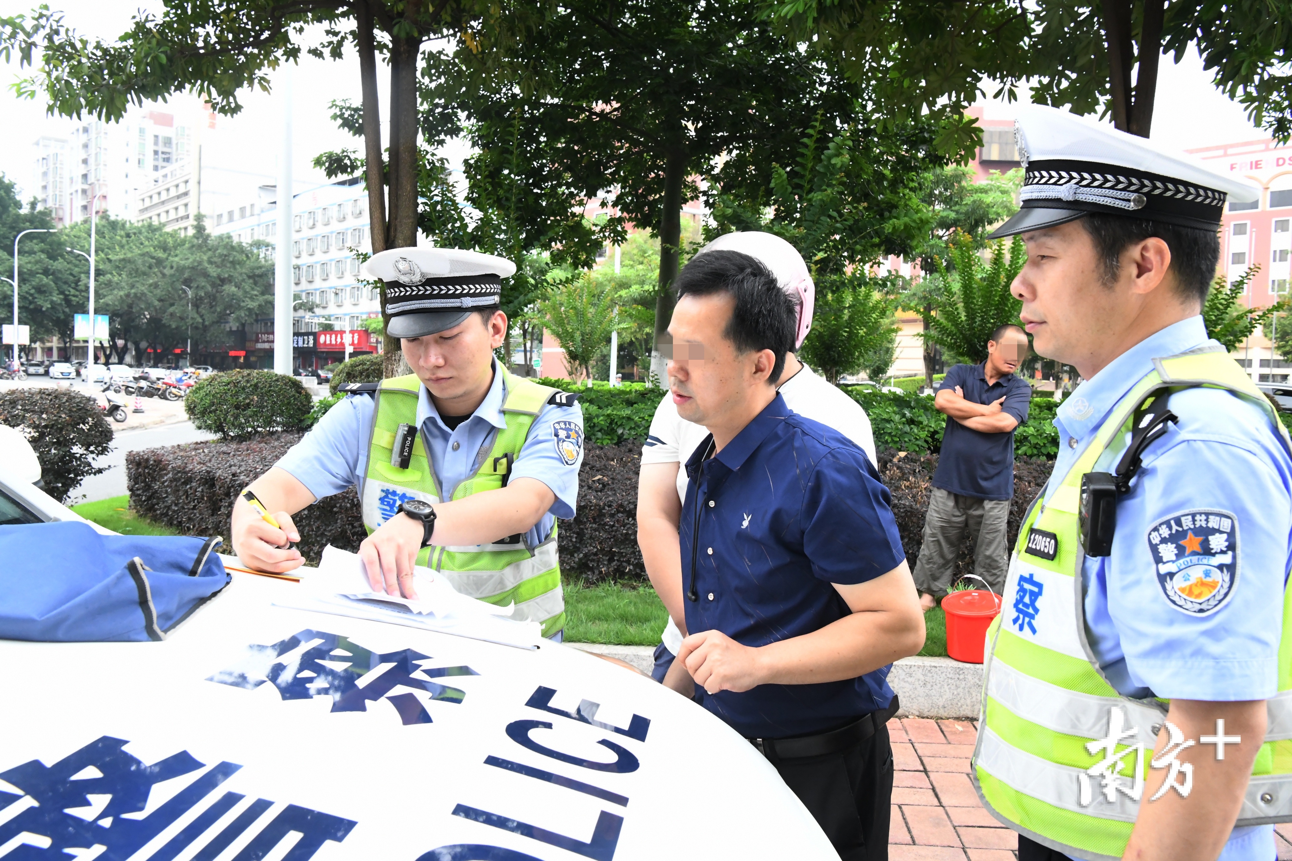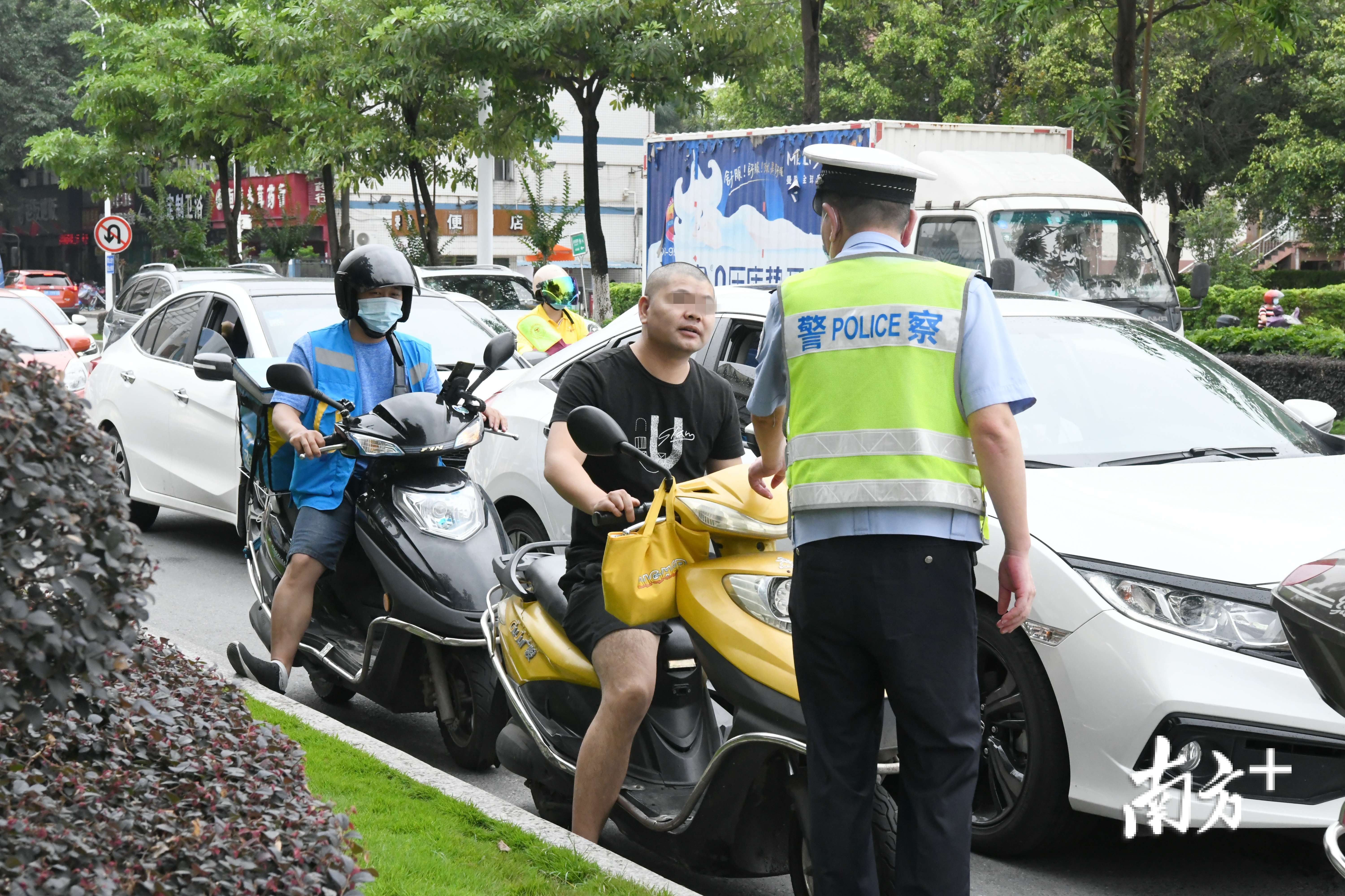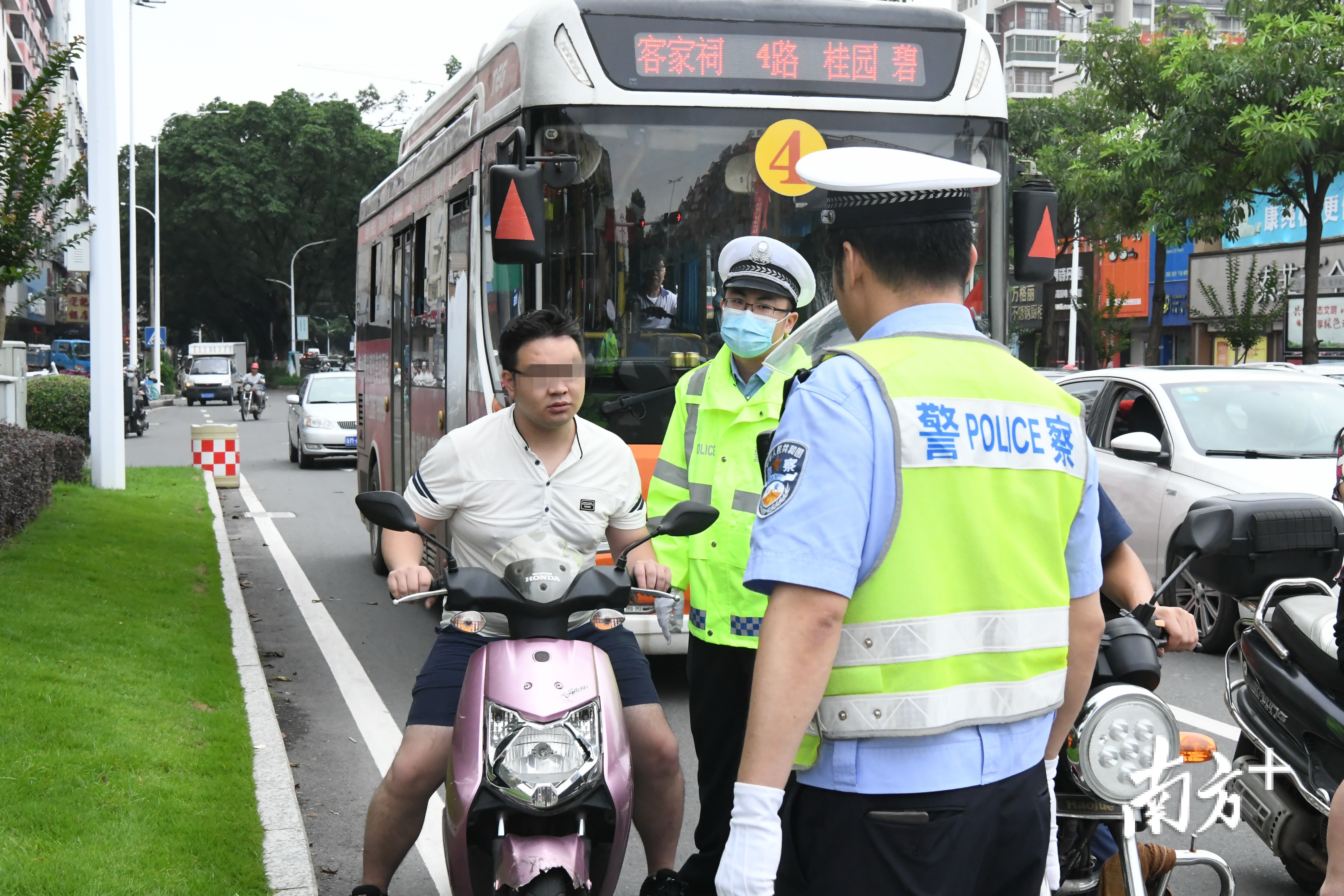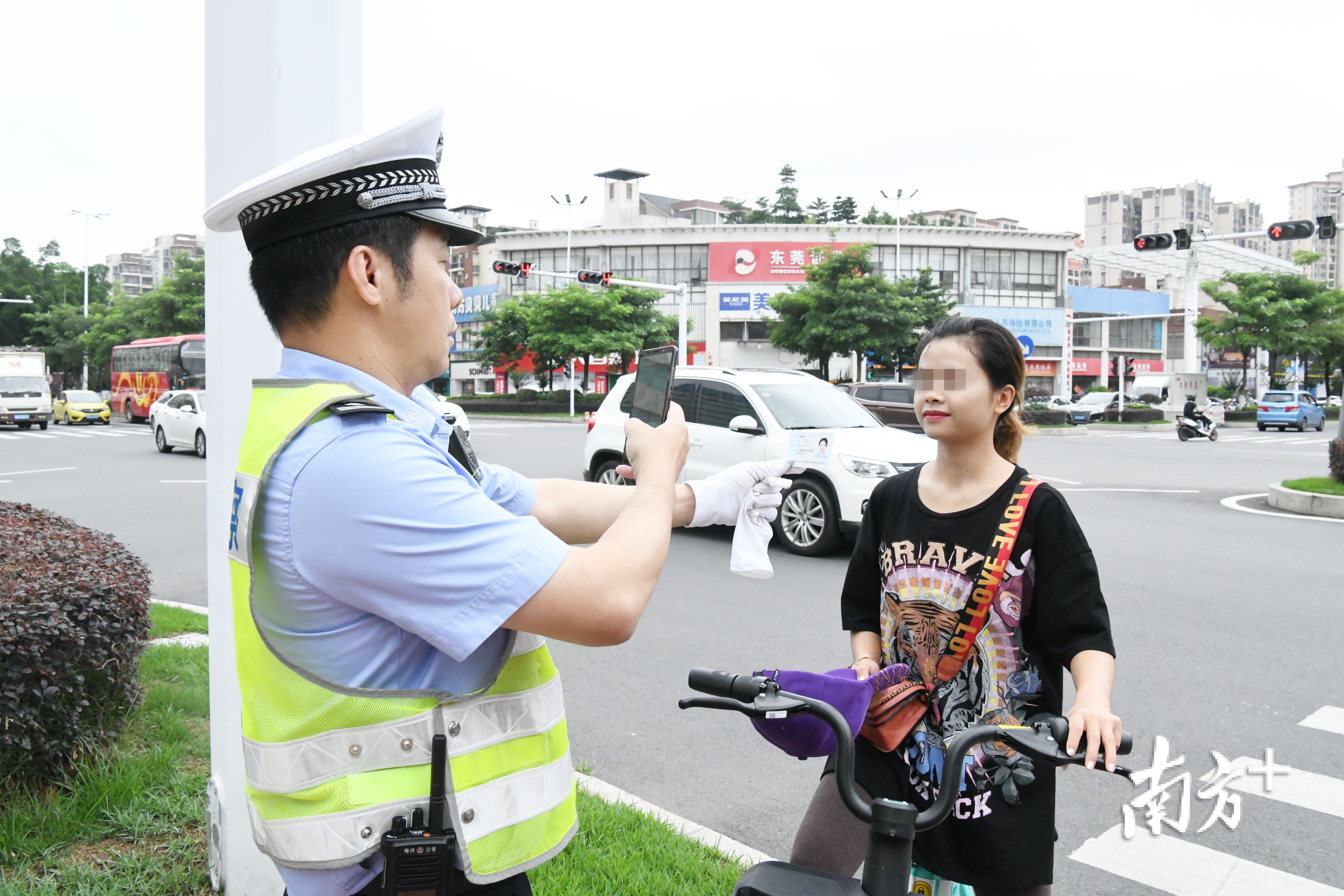 5月28日上午,梅州市交警部门在城区开展“一盔一带”专项整治行动,对骑乘摩托车不佩戴安全头盔、驾乘汽车不使用安全带的交通违法行为进行处罚和教育。