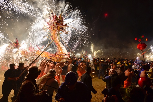 据埔寨镇有关负责人介绍,该镇今年元宵将会烧四条“火龙”, 其中埔北埔东村凤书楼有两条龙、一扇禹门、一个烟架,埔北远一村和埔南中心村各一条,除了烟架在凤书楼祠堂门口燃烧,其余都在龙身岽火龙广场燃烧表演。同时,今年活动还将增加大型烟花表演。烧火龙时间为3月2日晚上8点,地点在龙身岽火龙广场。
