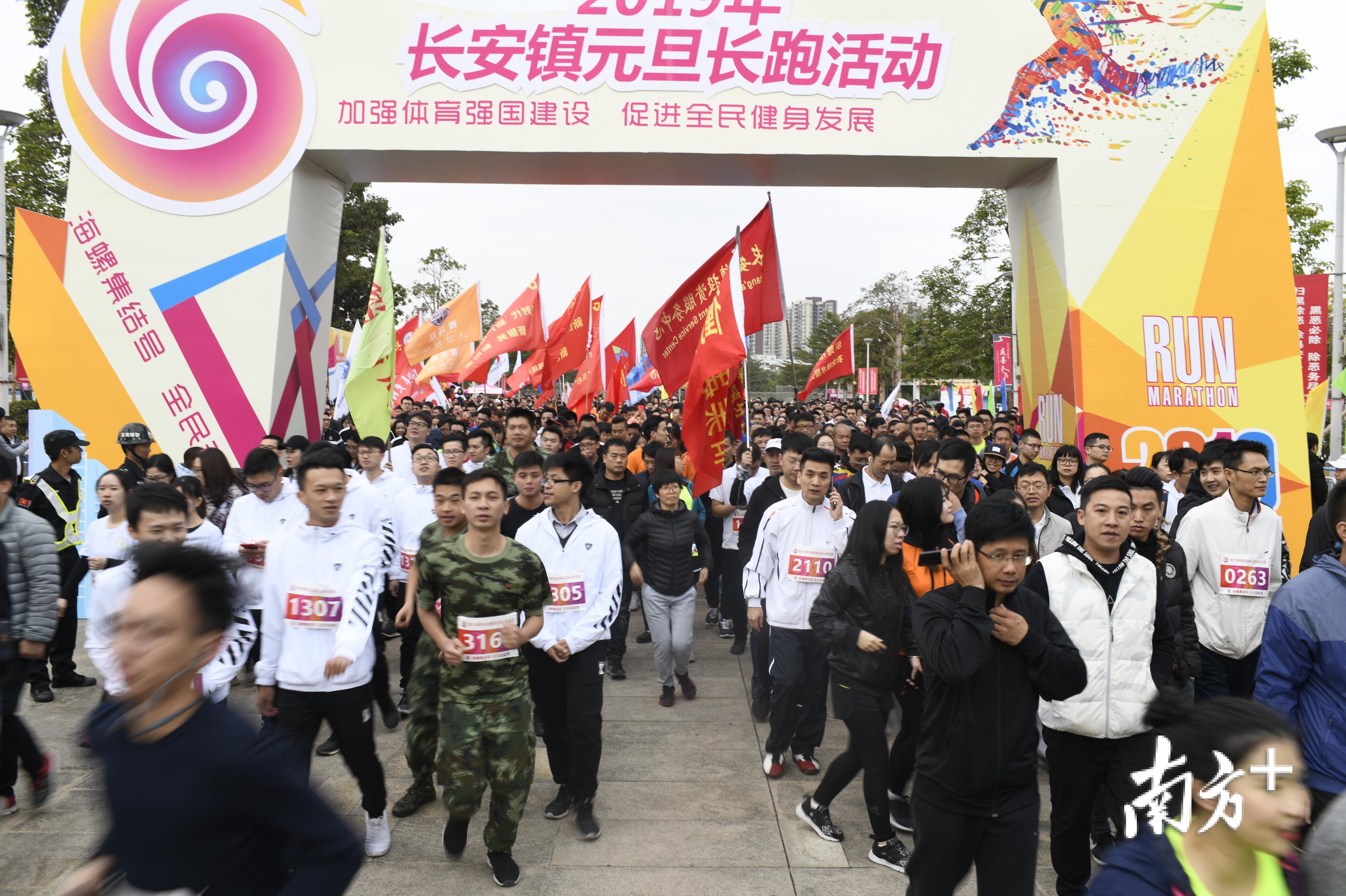 12月29日,2019长安镇元旦长跑活动在体育公园举行,来自全镇社会各界的3000人以崭新姿态奔向2019年。