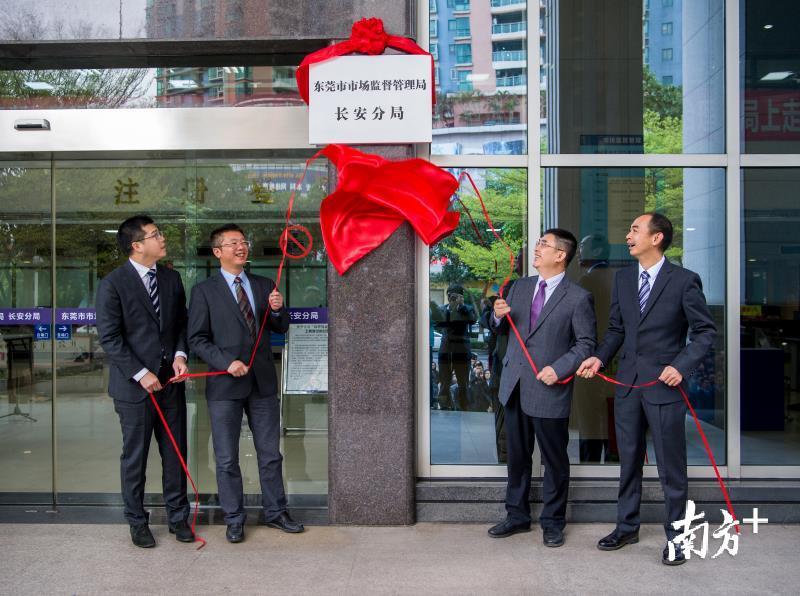 2月25日上午9时许,东莞市市场监督管理局长安分局正式挂牌,标志着长安镇市场监督管理分局正式成立。长安镇委副书记、镇长郭荣新,东莞市市场监督管理局副局长周穗杰及长安镇市场监督管理分局全体工作人员参加仪式。长安镇副镇长戴浩平主持挂牌仪式。